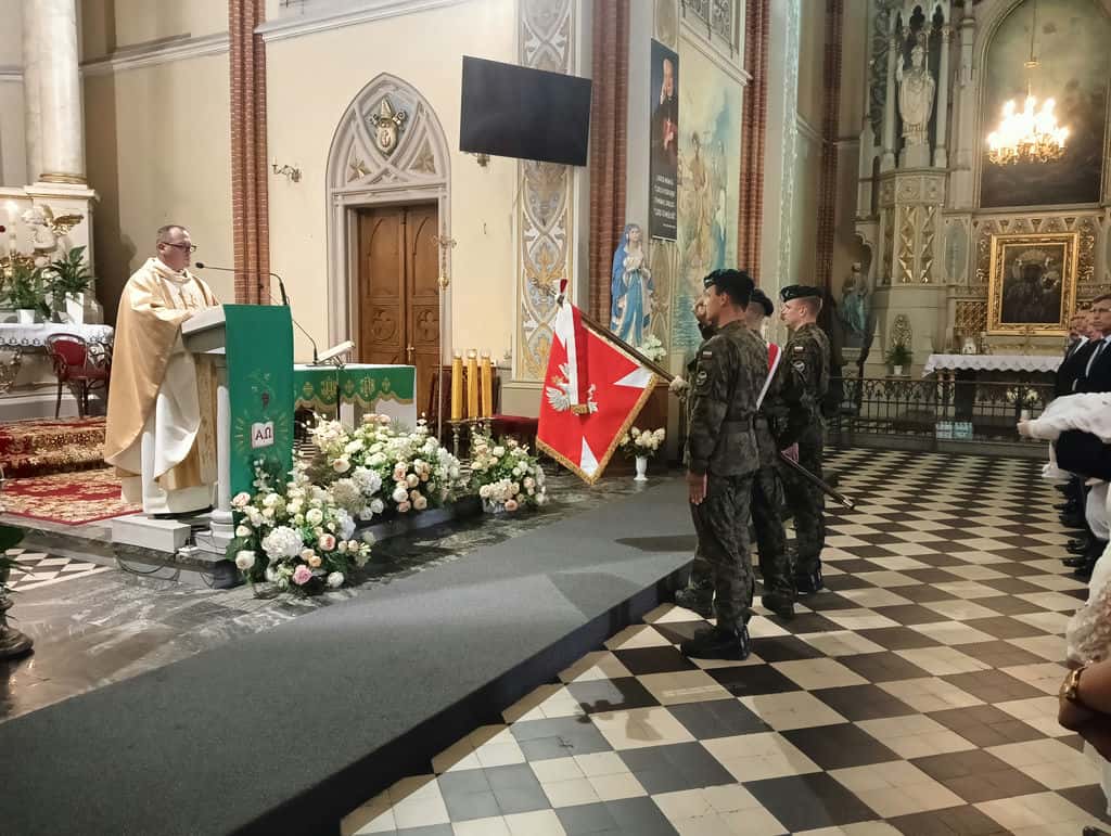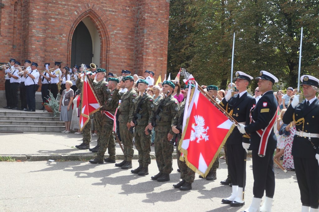 Pierwszą część obchodów w dniu 18 sierpnia stanowiła uroczysta msza święta koncelebrowana. Głównym celebransem był Proboszcz Parafii p. w. Najświętszego Serca Jezusowego ks. Krzysztof  GÓRSKI. Natomiast, okolicznościową homilię wygłosił duchowny spoza parafii ks. Zbigniew KIESZKOWSKI. Nabożeństwo, odbyło się zgodnie z regułami rekomendowanymi przez Ordynariat Polowy Wojska Polskiego. Oprawę muzyczną mszy zapewniła Orkiestra Dęta Ochotniczej Straży Pożarnej pod dyrekcją wielce zasłużonego kapelmistrza Zenona BROŻYNY.