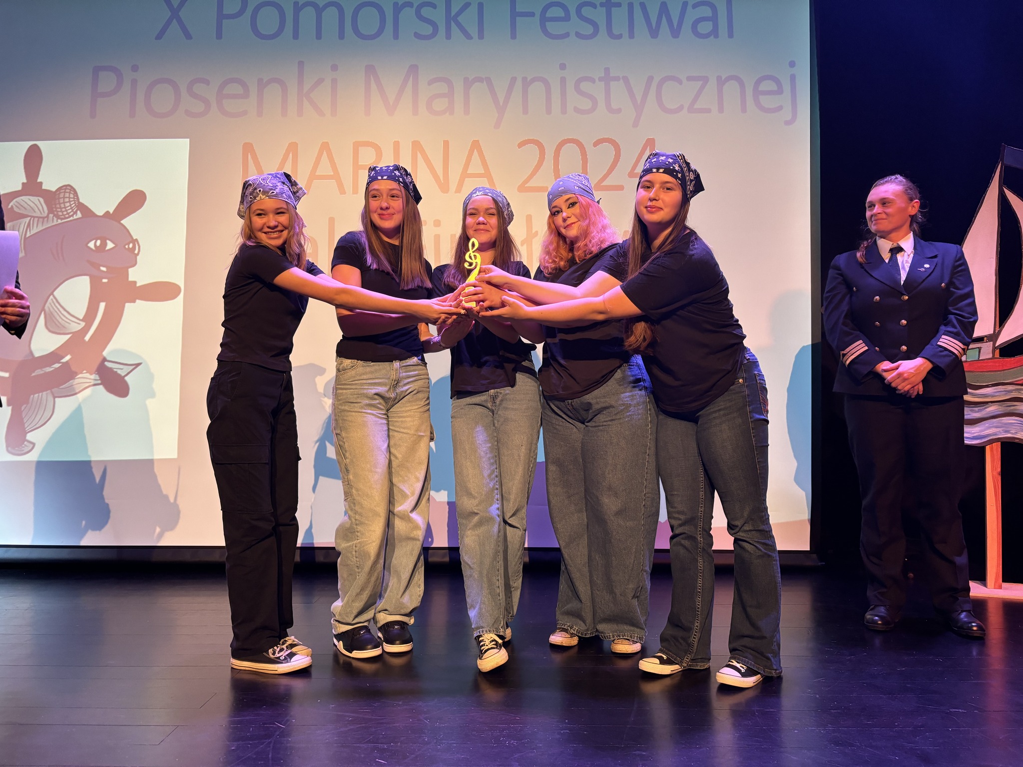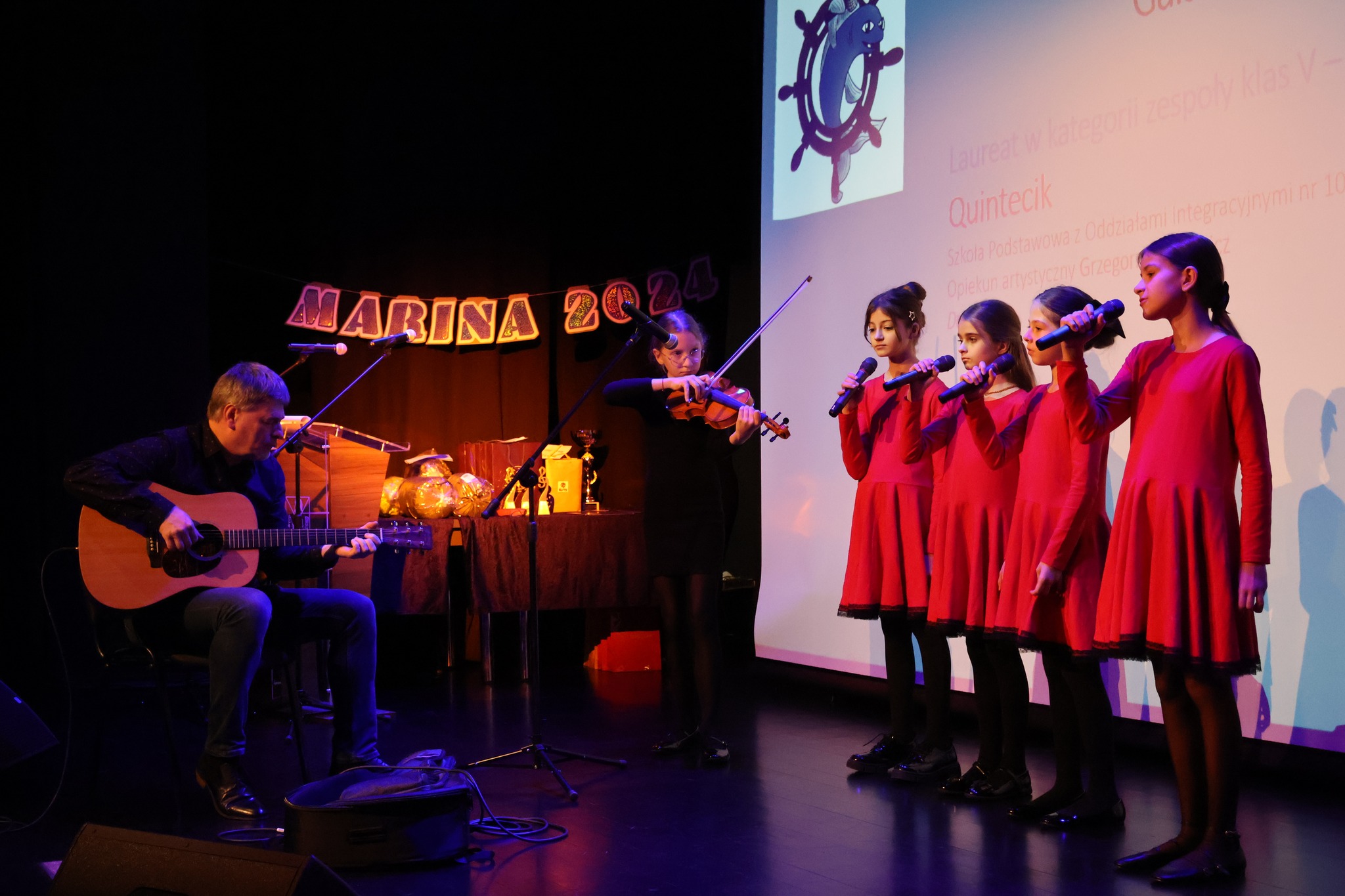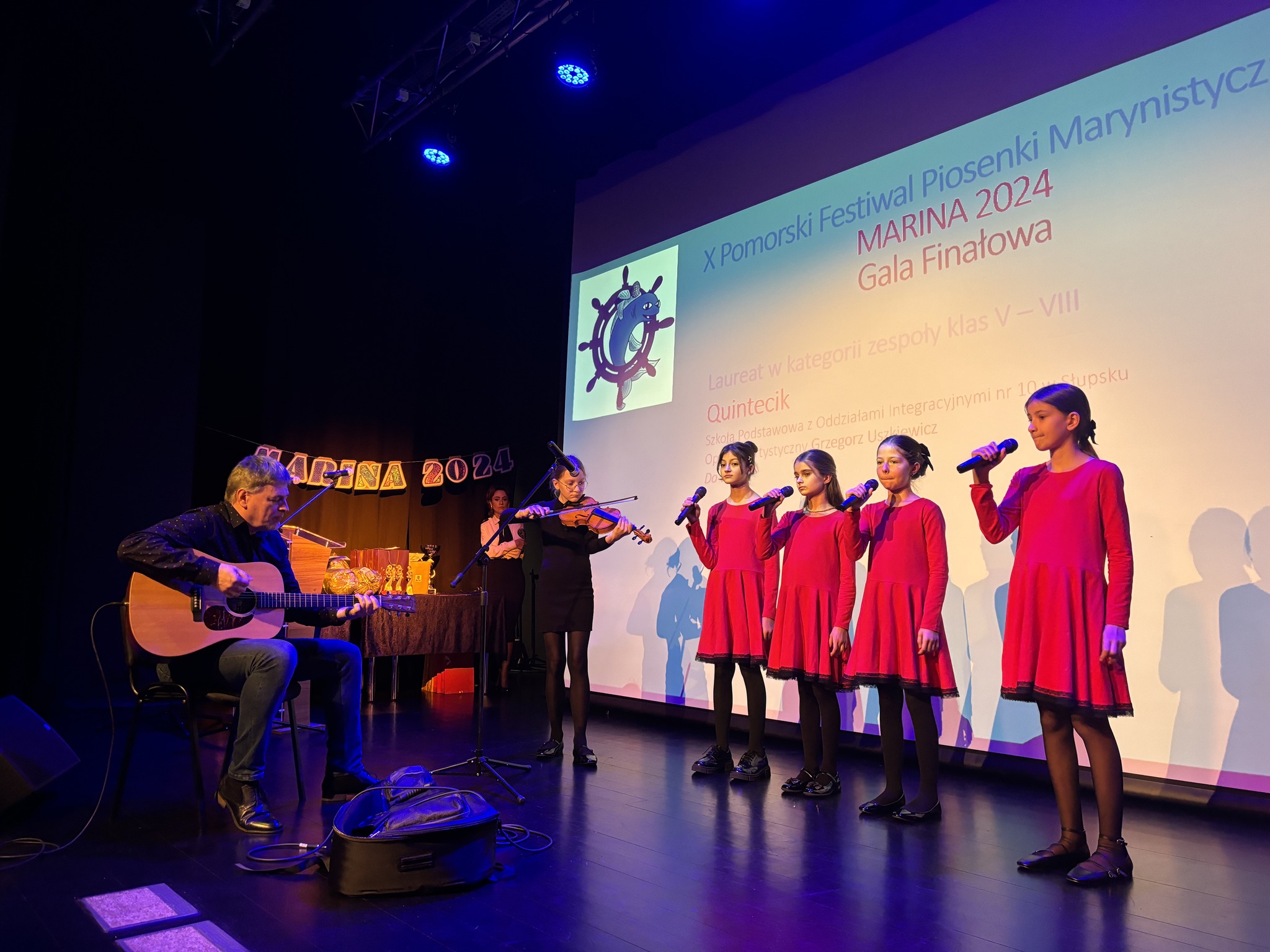 Gala Finałowa X Pomorskiego Festiwalu Piosenki Marynistycznej „Marina 2024” – Zespół „Quintecik” z piosenką „Do wiatru” (SPzOI nr 10 Słupsk, opiekun: Grzegorz Uszkiewicz) – I miejsce w kategorii zespołów starszych.