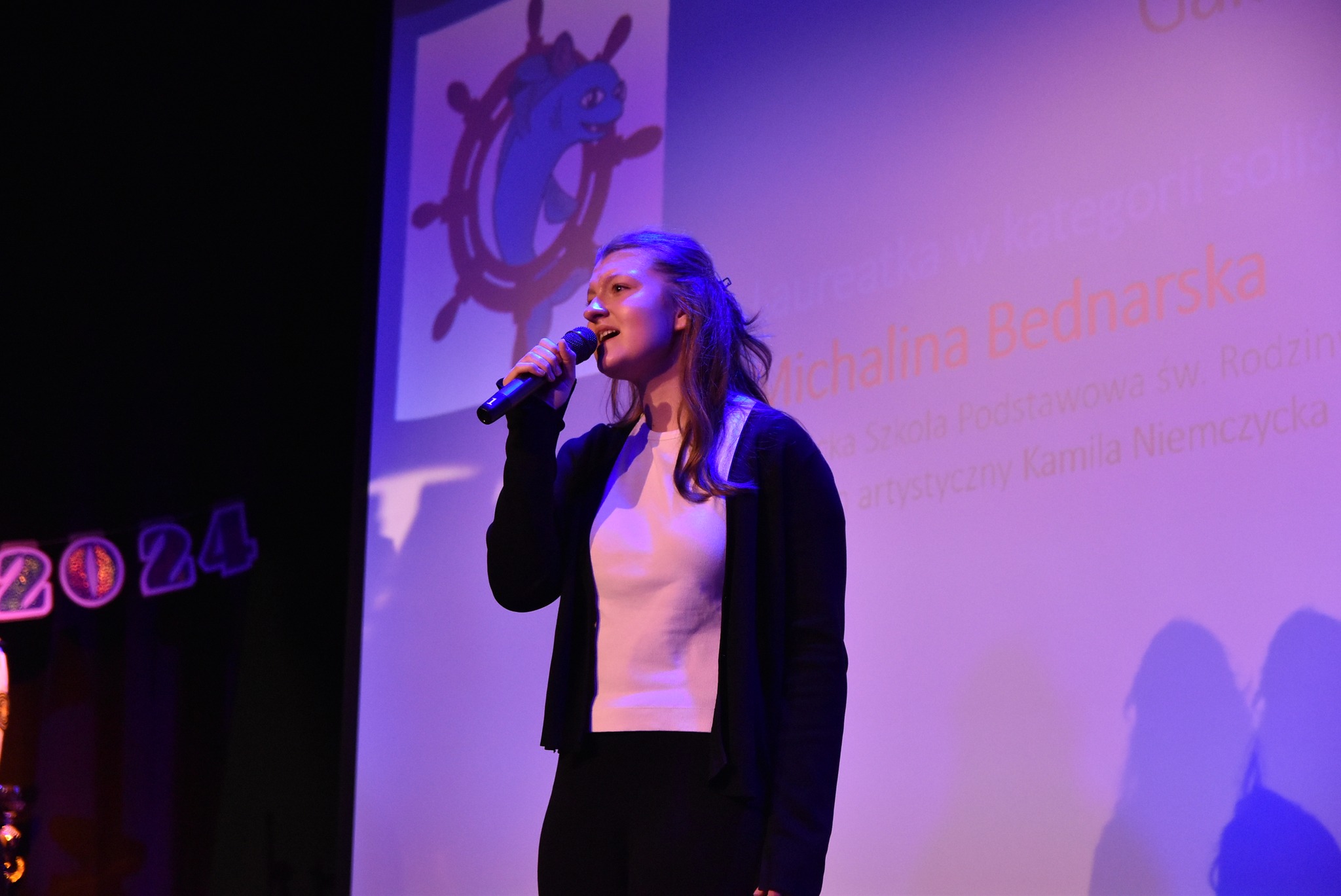 Gala Finałowa X Pomorskiego Festiwalu Piosenki Marynistycznej „Marina 2024” – Michalina Bednarska z piosenką „Kołysanka” (Katolicka SP św. Rodziny z Nazaretu – Ziarno Słupsk, opiekun: Kamila Niemczycka) – I miejsce w kategorii solistów starszych