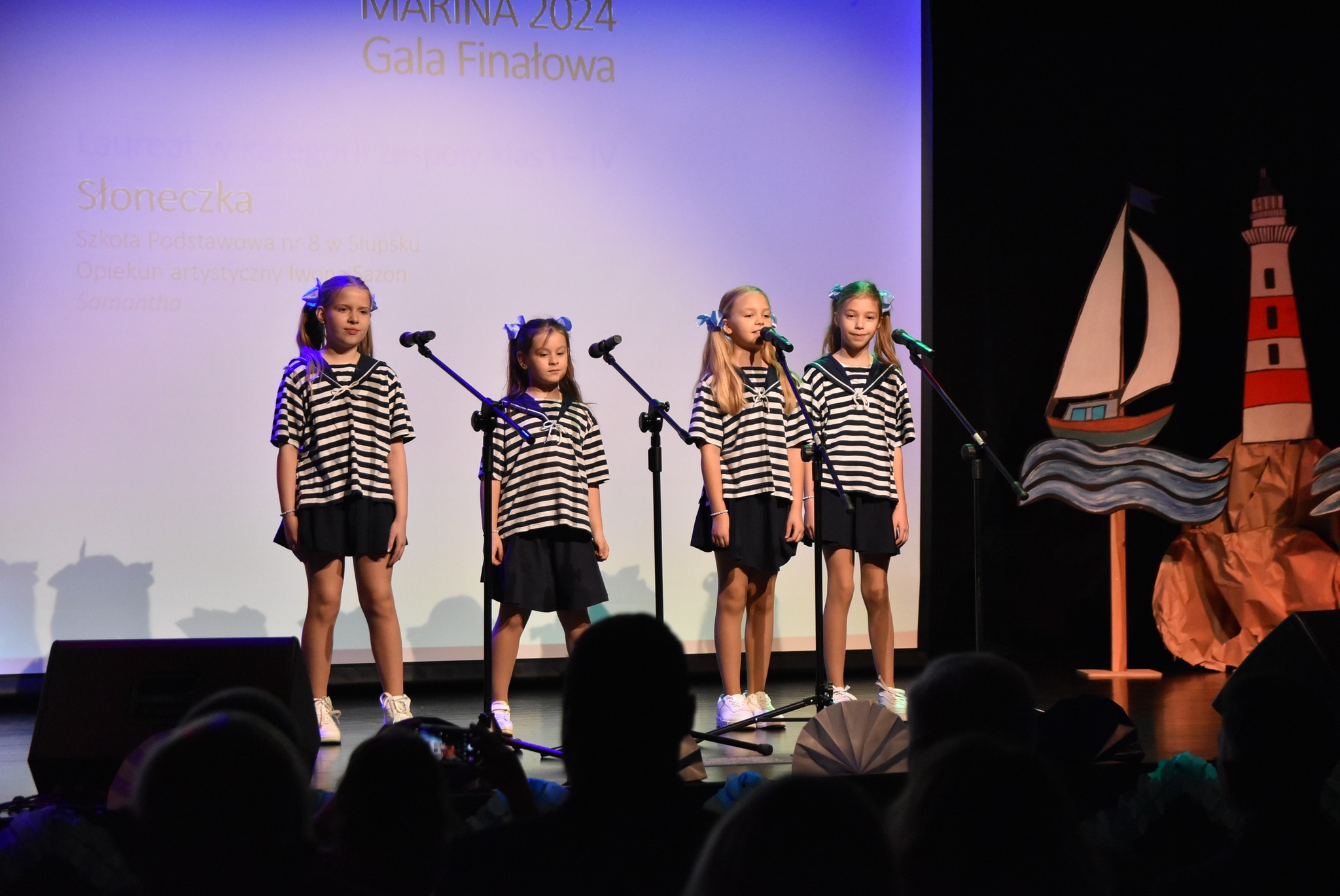 Gala Finałowa X Pomorskiego Festiwalu Piosenki Marynistycznej „Marina 2024” – Zespół „Słoneczka” z piosenką „Samantha” (SP 8 Słupsk, opiekun: Iwona Sazon) – I miejsce w kategorii zespołów młodszych.