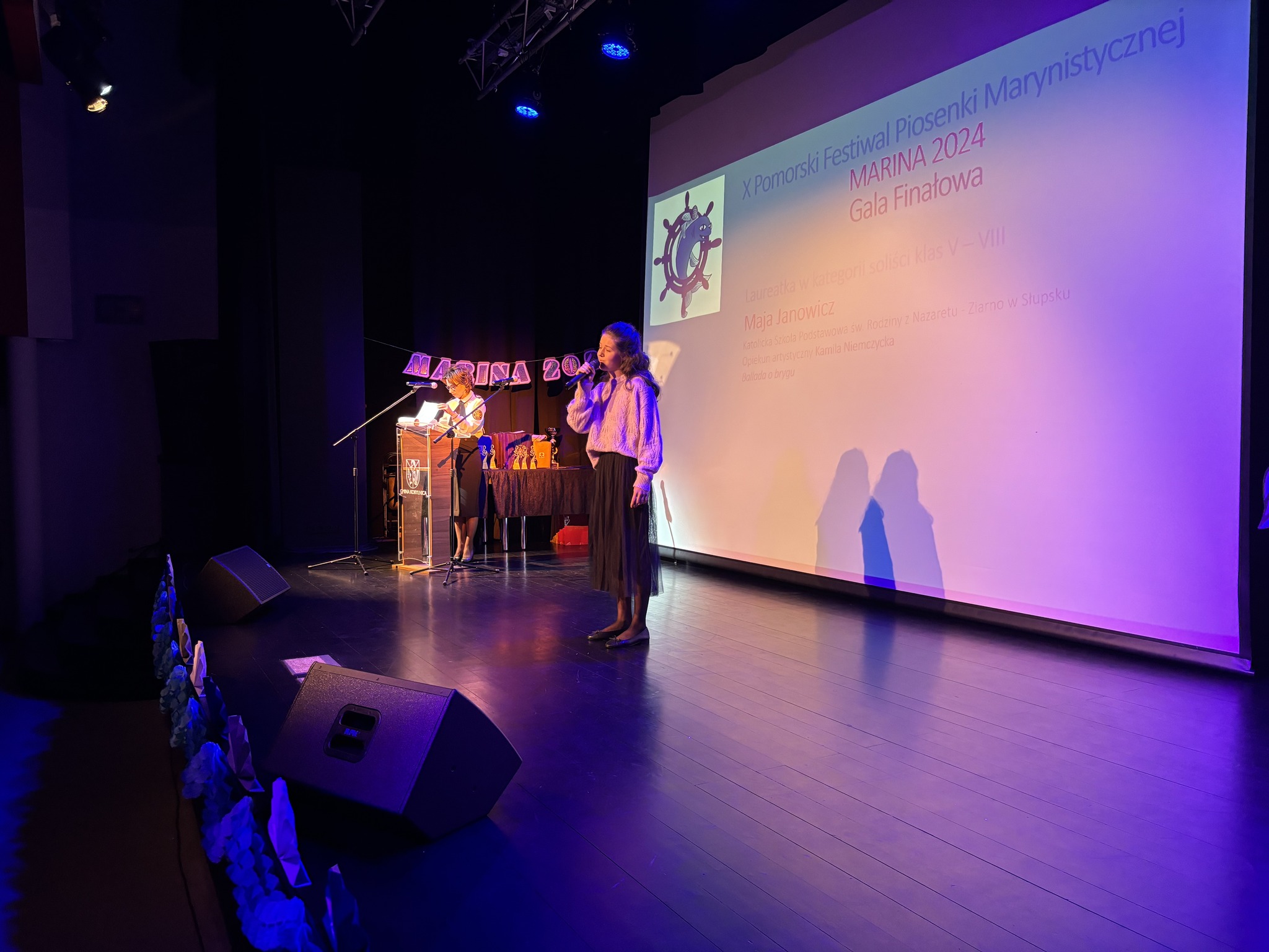 Gala Finałowa X Pomorskiego Festiwalu Piosenki Marynistycznej „Marina 2024” – Maja Janowicz z piosenką „Ballada o brygu” (Katolicka SP św. Rodziny z Nazaretu – Ziarno Słupsk, opiekun: Kamila Niemczycka) – II miejsce w kategorii solistów starszych.