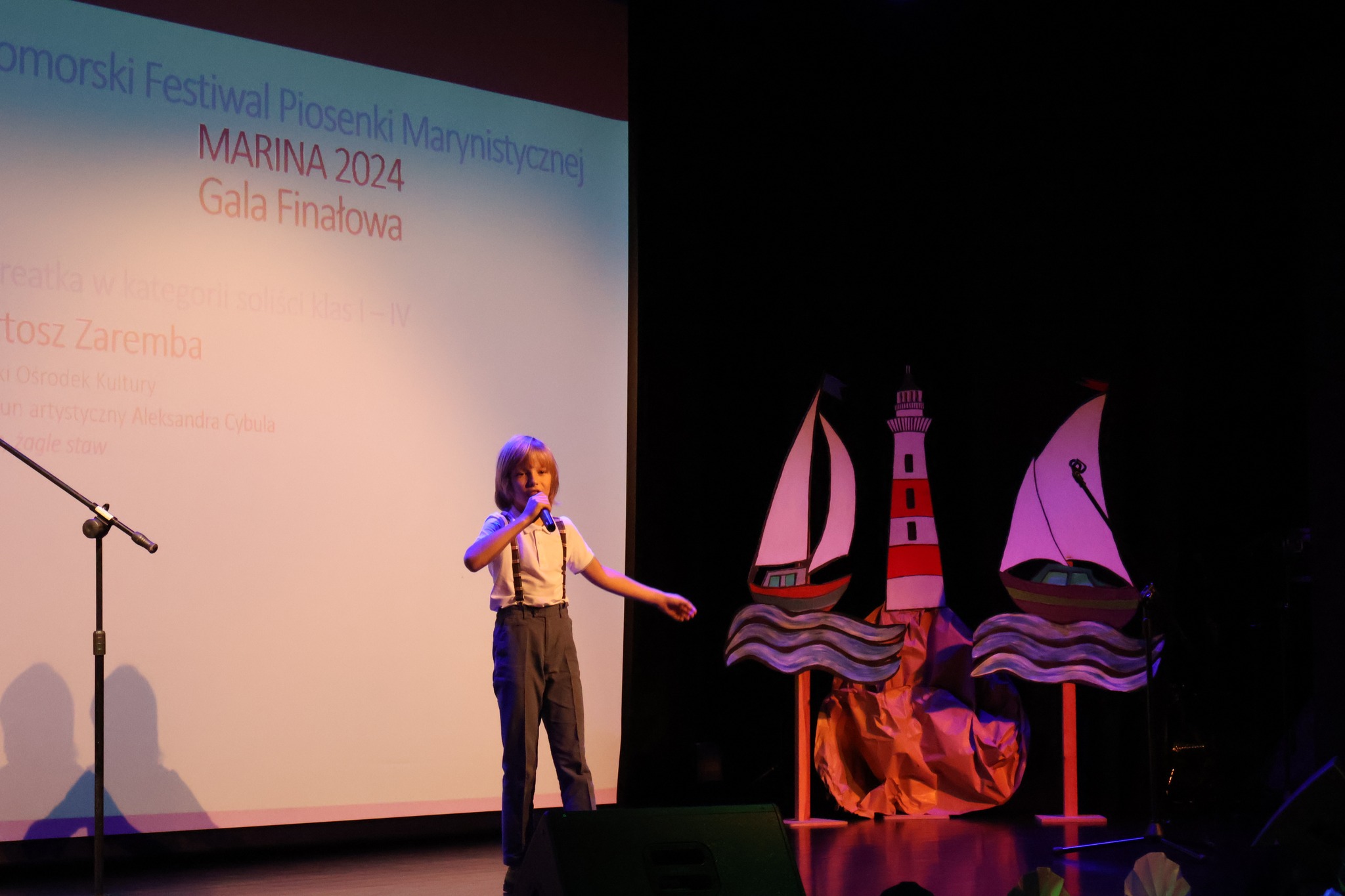 Gala Finałowa X Pomorskiego Festiwalu Piosenki Marynistycznej „Marina 2024” – Bartosz Zaremba z piosenką „Hej ho, żagle staw” (SOK Słupsk, opiekun: Aleksandra Cybula) – I miejsce w kategorii solistów młodszych