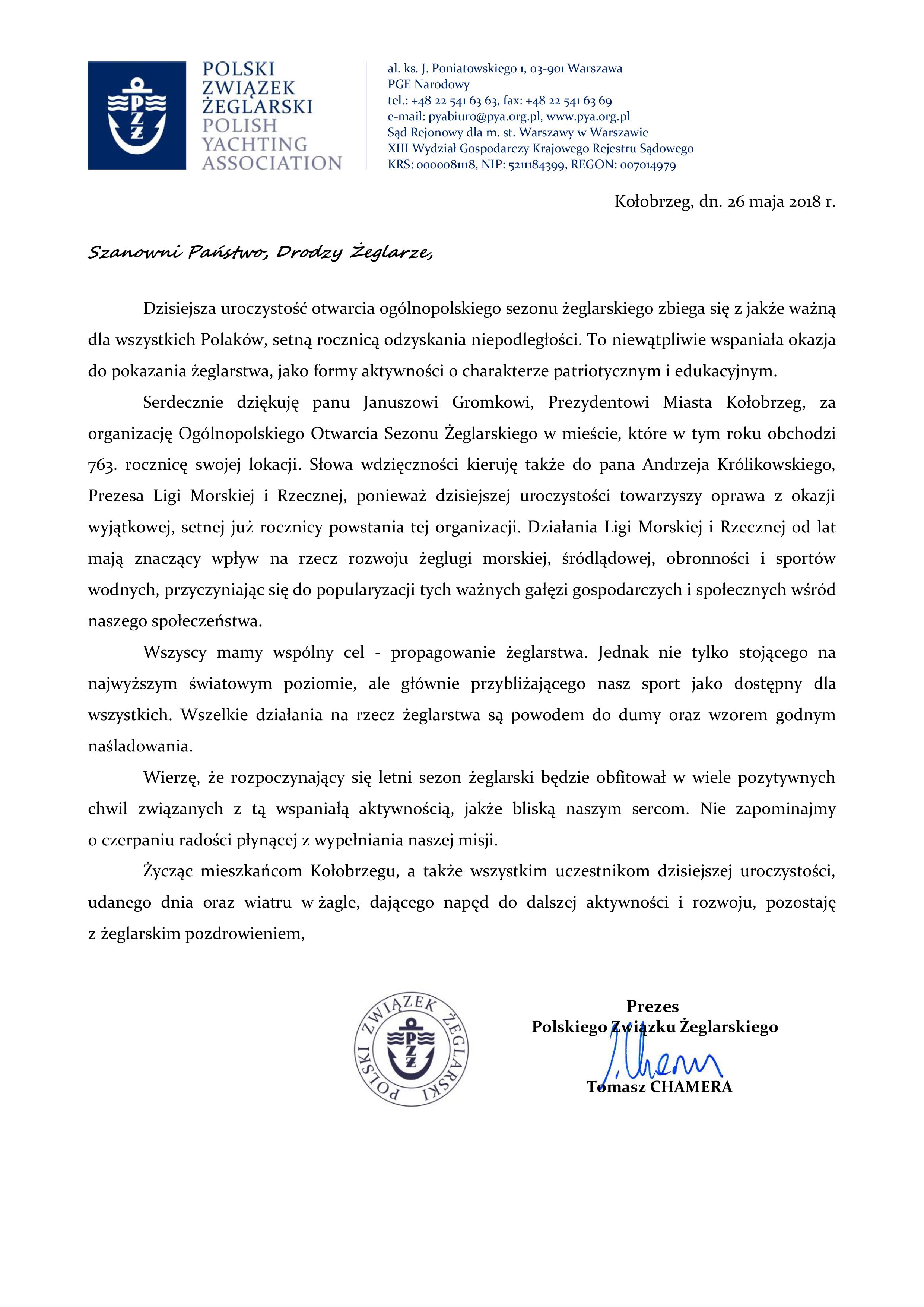 Życzenia od Prezesa Polskiego Związku Żeglarskiego