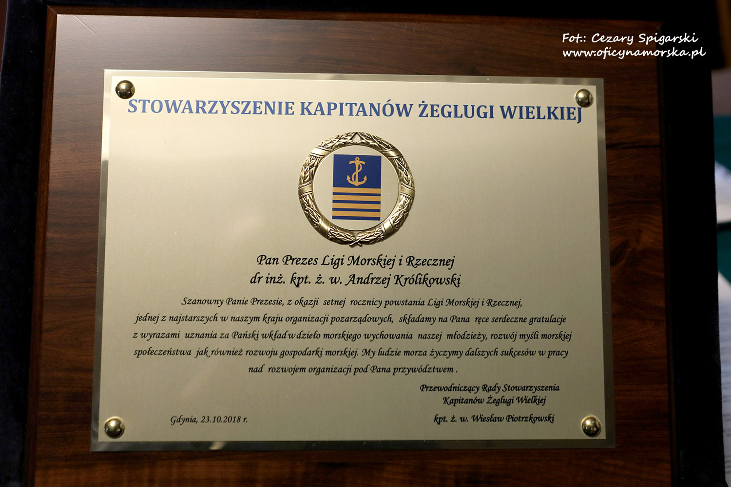 Stowarzyszenie Kapitanów Żeglugi Wielkiej w 100 – leciu odzyskania niepodległości w obiektywie Cezarego Spigarskiego