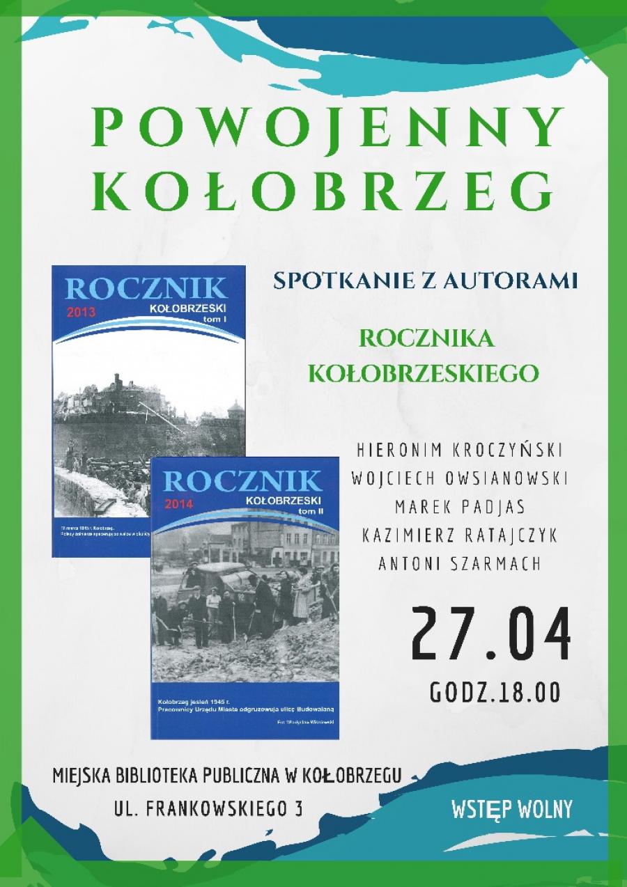 Za nami spotkanie promujące pierwsze dwa tomy „Rocznika Kołobrzeskiego”. Autorzy uczestniczący w spotkaniu – dr. H. Kroczyński, W. Owsianowski, M. Padjas, A. Szarmach, K. Ratajczyk (Wydawnictwo Reda) zapowiedzieli kontynuację. W tomie drugim przedstawiono wspomnienia o kołobrzeskiej Lidze Morskiej i Rzecznej. Opis zawiera pierwsze lata powojenne oraz czas odrodzonej organizacji. Tekst bogato ilustrowany zdjęciami, rycinami i […]