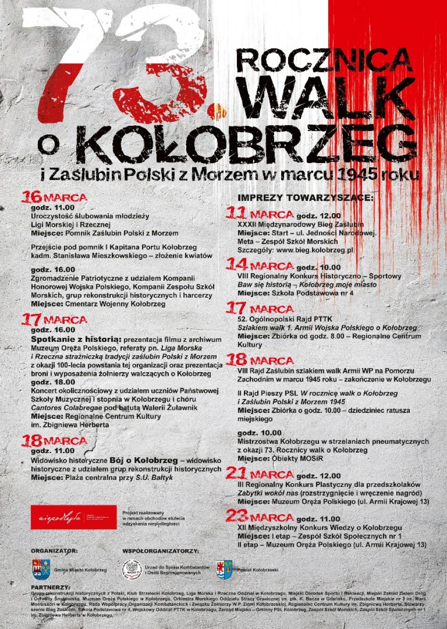 7 marca 2018 roku w Muzeum Oręża Polskiego w Kołobrzegu zwołana została konferencja prasowa dotycząca obchodów 73. Rocznicy Walk o Kołobrzeg oraz pokazu historycznego pt. „Bój o Kołobrzeg”. Konferencję poprowadził Starosta Kołobrzeski Tomasz Tamborski, który przedstawił program tegorocznych obchodów 73. rocznicy Walk o Kołobrzeg i Zaślubin Polski z Morzem w marcu 1945 roku. Główne obchody […]