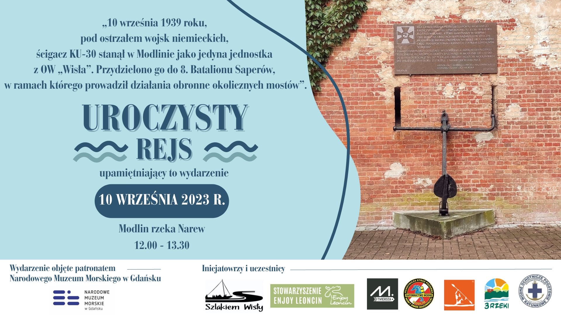 „10 września 1939 roku, pod ostrzałem wojsk niemieckich ścigacz KU-30 stanął w Modlinie jako jedyna jednostka z OW „Wisła”. Przydzielono go do 8. Batalionu Saperów w ramach którego prowadził działania obronne okolicznych mostów”. Dla upamiętnienia tego faktu Fundacja Szlakiem Wisły, Liga Morska i Rzeczna Oddział w Wyszkowie oraz Fundacja Eskadra pragną odbyć rejs zakończony oddaniem […]
