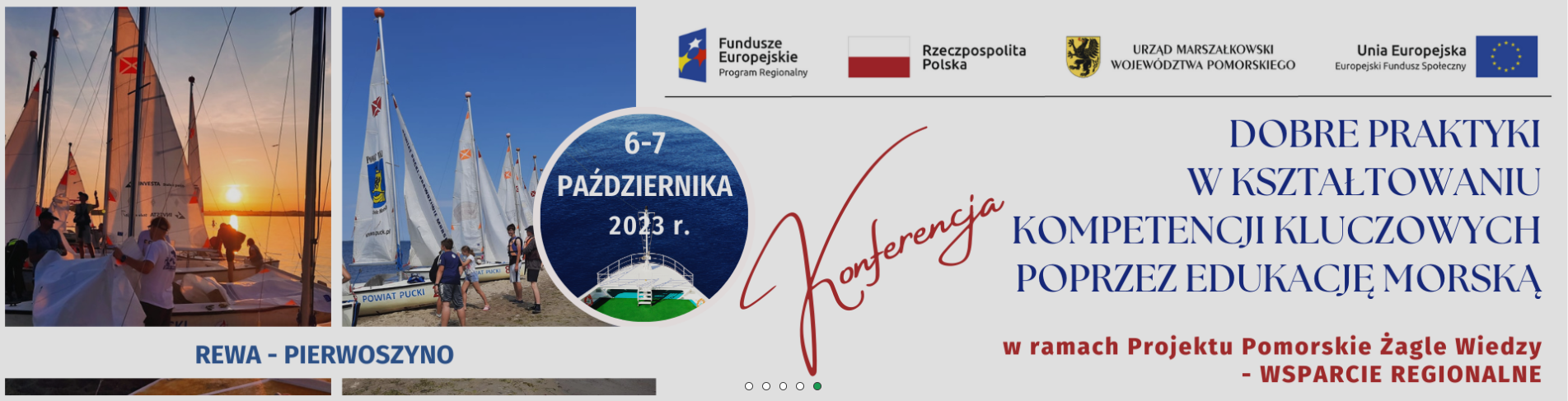 Pomorski Ośrodek Doskonalenia Nauczycieli w Słupsku serdecznie zaprasza na DWUDNIOWĄ Konferencję pn. Dobre praktyki w kształtowaniu kompetencji kluczowych poprzez edukację morską w ramach projektu Pomorskie Żagle Wiedzy – wsparcie regionalne TERMIN: 6-7 października 2023 r. MIEJSCE: Rewa – Pierwoszyno Noclegi i wyżywienie dla nauczycieli są bezpłatne. Liczba miejsc noclegowych ograniczona – decyduje kolejność zgłoszeń. Szczegóły i formularz zgłoszenia: https://www.odn.slupsk.pl/doskonalenie-oferta-szkolen/szkolenia/edukacja-morska/formy-doskonalenia-9-432/konferencja-dobre-praktyki-w-ksztaltowaniu-kompetencji-kluczowych-poprzez-edukacje-morska/