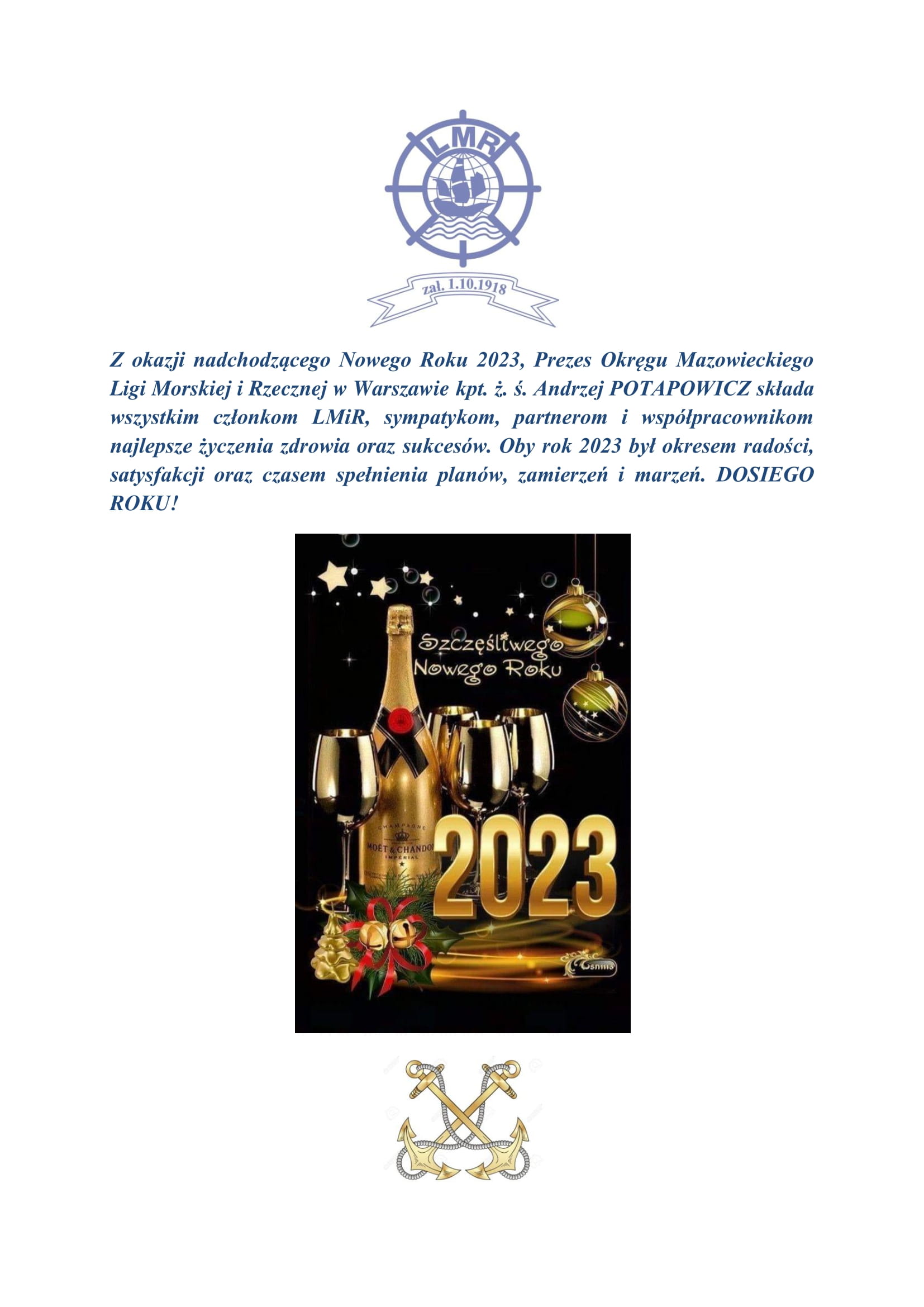 Dnia 8 grudnia 2022 w Warszawie przy ul. Św. Barbary 1 miało miejsce ostatnie, w tym roku, posiedzenie władz Okręgu Mazowieckiego Ligi Morskiej i Rzecznej. Mimo, że we wspomnianym miejscu zebrania OM LMiR odbywają się od ponad roku, to tym razem, dzięki uprzejmości Prezesa firmy INVEST Sp. z oo. Pana Jerzego KUPRIJANIUKA, od grudnia 2022 […]