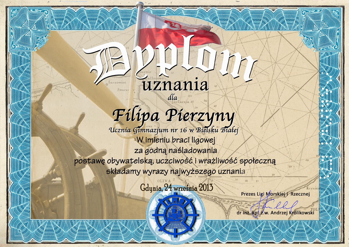 W imieniu Braci Ligowej za godną naśladowania postawę obywatelską, uczciwość i wrażliwość społeczną składamy wyrazy najwyższego uznania dla Filipa Pierzyny z Jasienicy, ucznia bielskiego Gimnazjum nr 16. W kałuży na przystanku autobusowym znalazł portfel z dokumentami i znaczną kwotą pieniędzy. Portfel należał do obywatela Ukrainy, który jest budowlańcem. Od półtora roku mężczyzna pracował przy remontach dachów, odkładając […]