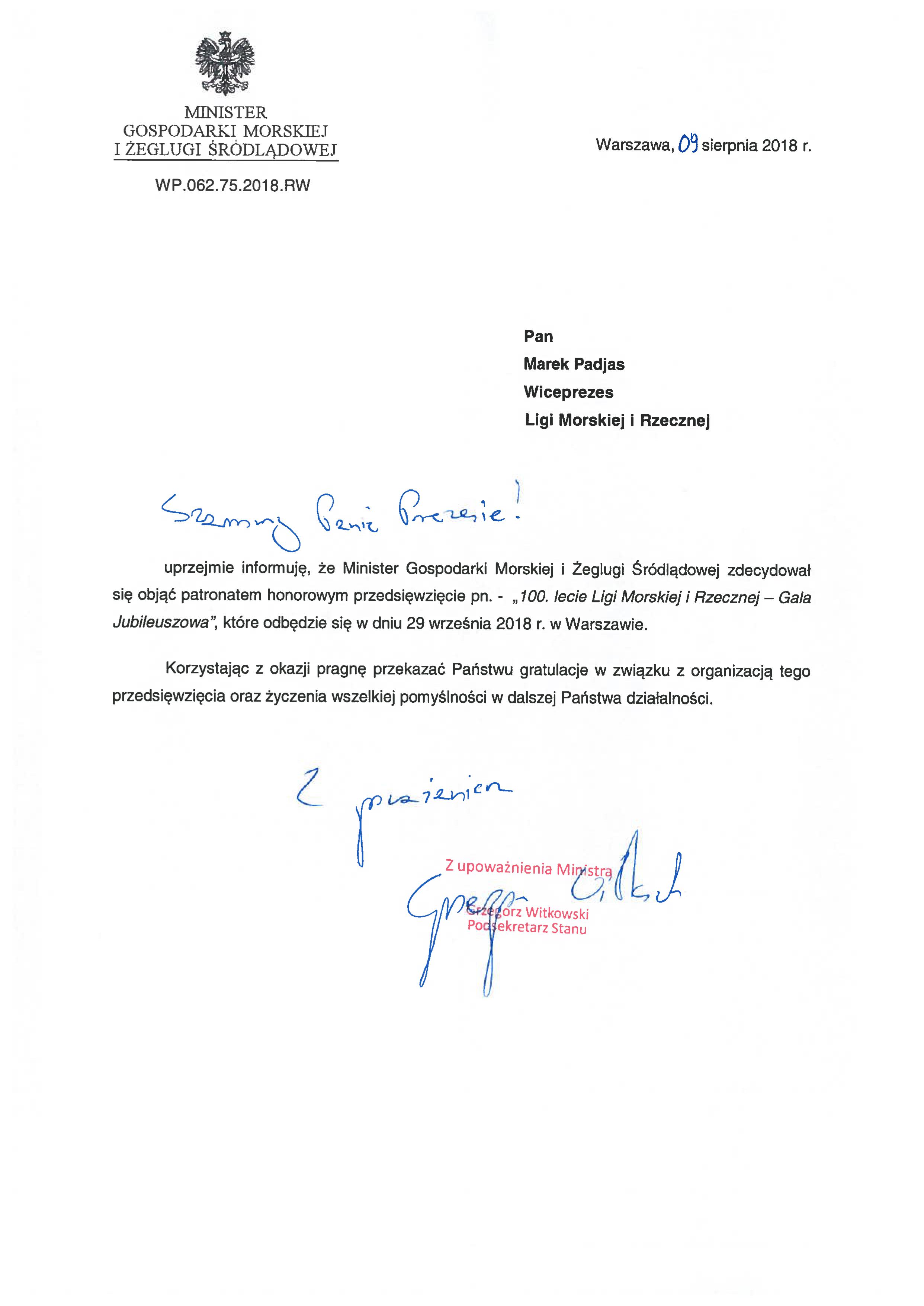 Patronat Honorowy Ministra Gospodarki Morskiej i Żeglugi Śródladowej