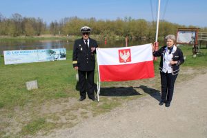 Koleżanka Hanna Potapowicz przypomniała historię tego miejsca, które od lat 20-tych XX wieku służy wodniakom oraz Ostrołęczan zauroczonych Narwią, uprawiających wioślarstwo, żeglarstwo, sporty motorowodne i wychowujących tu następne pokolenia wodniaków, m. in. dr Józefa Psarskiego, druha Jerzego Wolińskiego. Atrakcją była prezentowana przez członków Zarządu Okręgu Mazowieckiego Ligi Morskiej i Rzecznej replika bandery pierwszego polskiego statku szkolnego – „STS Lwów” Szkoły Morskiej w Tczewie.
