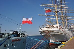 Bandery na ORP Błyskawica i STS Dar Pomorza