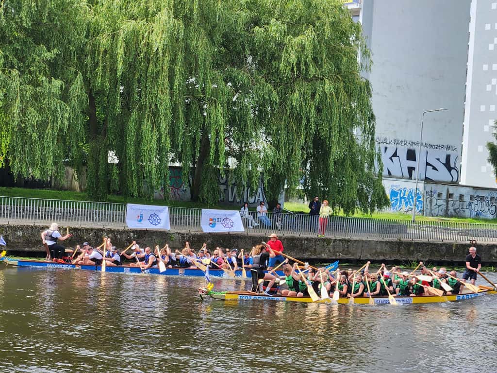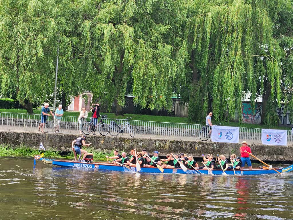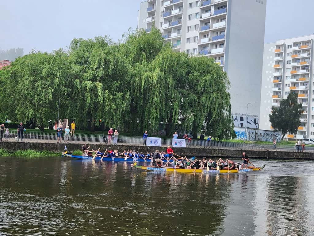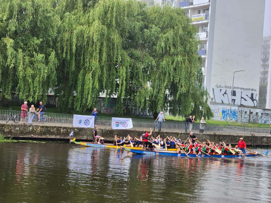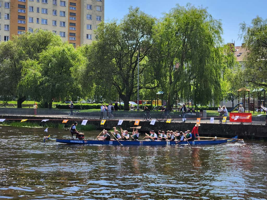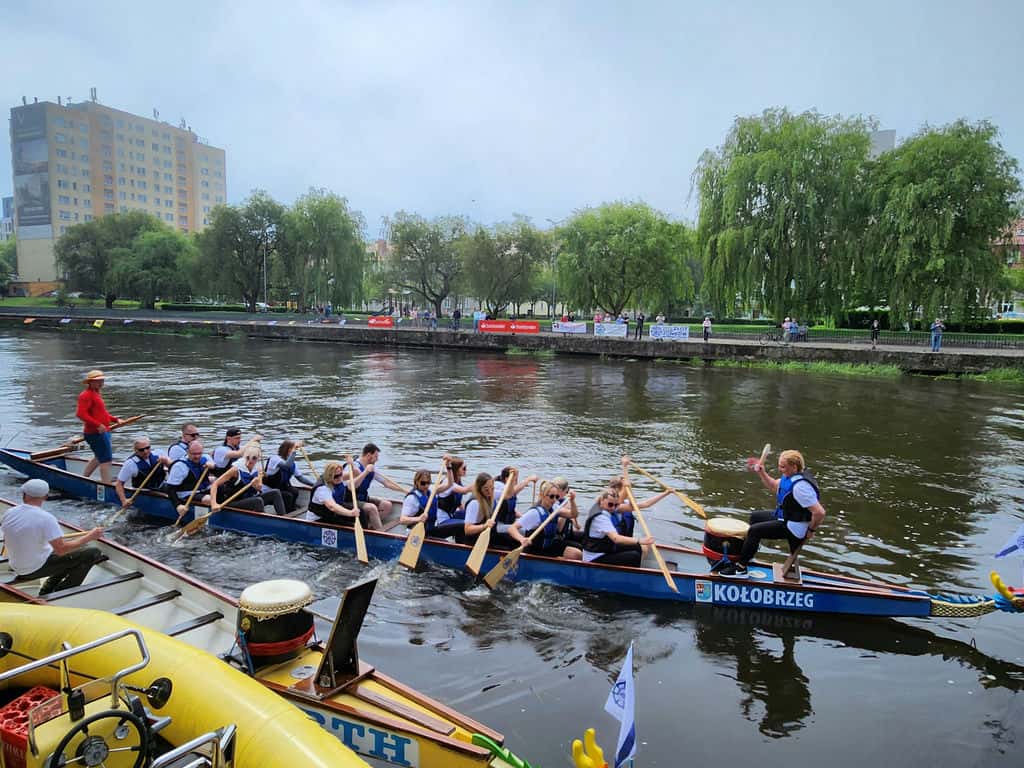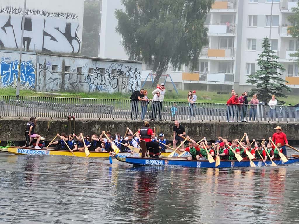 Doskonała zabawa, wysiłek fizyczny i piękne okoliczności przyrody – w sobotę odbyły się Regaty Smoczych Łodzi na rzece Parsęcie. Po raz pierwszy zorganizowano je w Dzień Dziecka. Nie zabrakło więc i najmłodszych miłośników tego typu rozrywek. To już 23 edycja Regat na Smoczych Łodziach. W tym roku zgłosiło się 13 drużyn. Tradycyjnie, zawodnicy mieli do pokonania dystans pomiędzy fontannami. Ścigali się uczniowie szkół z powiatu, mieszkańcy, urzędnicy, sportowcy, reprezentacje kołobrzeskich przedsiębiorstw, znajomi i przyjaciele. ,,W tego typu zawodach liczy się siła, wytrzymałość, a przede wszystkim technika i synchronizacja wiosłowania. Cieszy nas fakt, że drużyny chcą osiągnąć optymalną formę i że nasze regaty wpisały się na stałe w kalendarz wydarzeń kulturalnych Kołobrzegu” – powiedział Marek Padjas Prezes Ligi Morskiej i Rzecznej organizator wydarzenia. Walka była niezwykle zacięta i do końca nie było wiadomo kto zostanie zwycięzcą. Tym razem na najwyższym podium stanęła drużyna Drift Team Kołobrzeg, wygrali z imponującym czasem 1 min 37,88. Na drugim miejscu uplasowała się drużyna Zespołu Szkół Morskich z czasem 1min 38,01, a na trzecim Szkoła Podstawowa nr 1 w Kołobrzegu 1 min 40,61.