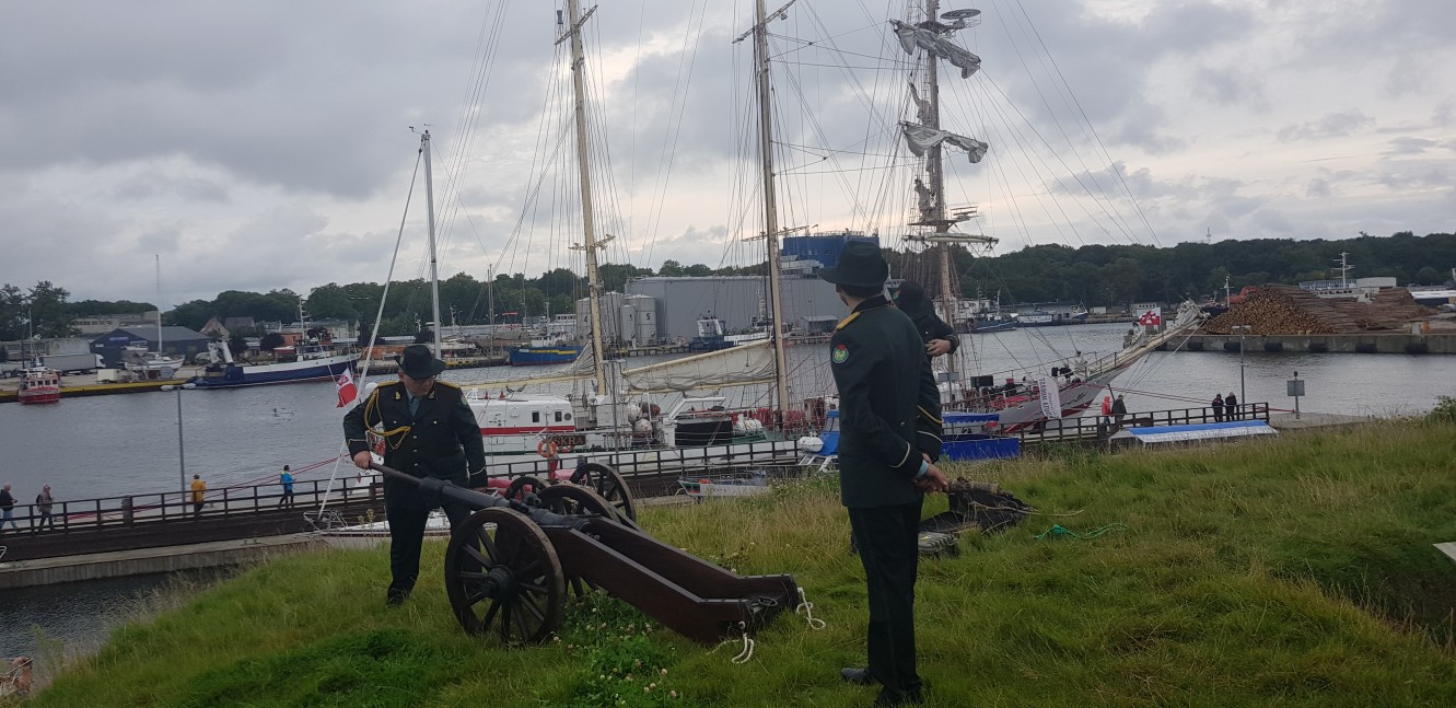O godzinie 18.00 Kołobrzeskie Bractwo Kurkowe zaprosiło marynarzy do Reduty Morast. To dzieło fortyfikacyjne zostało zbudowane w latach 1770-1774. Razem z Fortem Ujście stanowiły obiekty służące obronie portu oraz ujścia Parsęty. W czasie wakacji w każdą sobotę oddawany jest salut armatni. Tym razem na cześć wojennych marynarzy rozległ się on trzykrotnie. Robert Dziemba z obsadą baterii opowiadali o historii twierdzy i miasta.