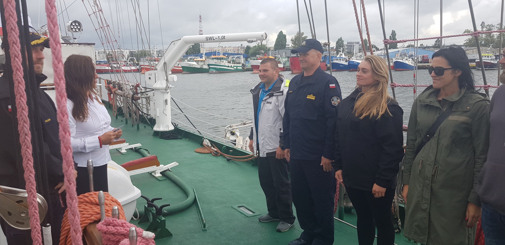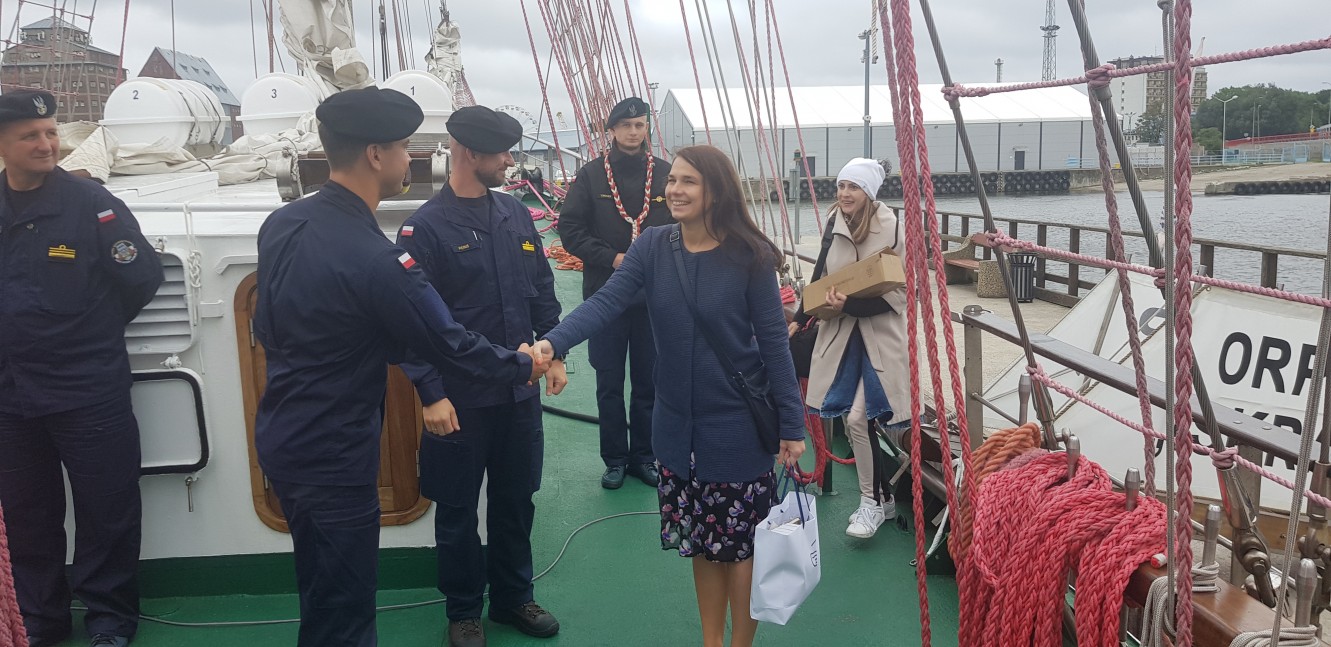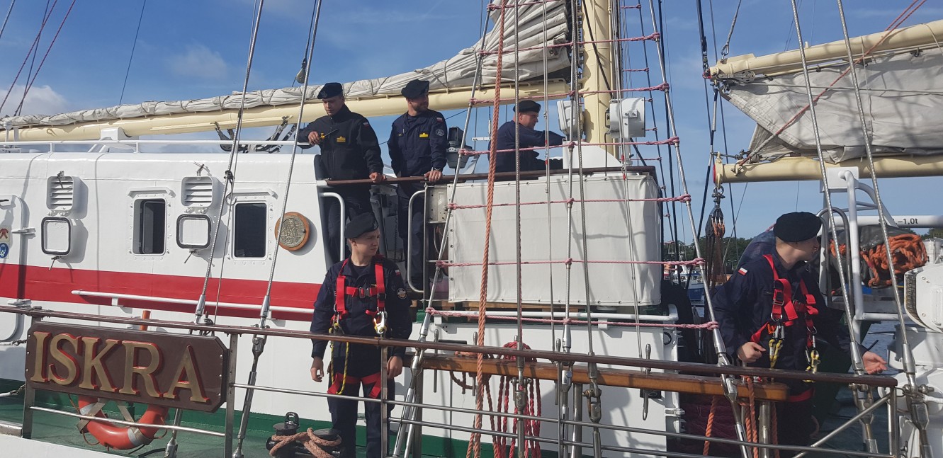 Powitanie nie ma końca. Uściski dłoni i nie tylko. Podchorążowie pierwszego roku studiów, którzy odbywają praktyki marynarskie patrzą trochę ze zdziwieniem. Za kilka lat kiedy zostaną oficerami też będą mieli przyjaciół w wielu portach. Ludzie floty to niewielka społeczność. Prawie wszyscy się znają. Liga Morska i Rzeczna od wielu lat jest obecna na pokładzie ORP Iskra. Jungowie odbywają rejsy pod żaglami. Pod doświadczonym okiem załogi uczą się morskiego rzemiosła.