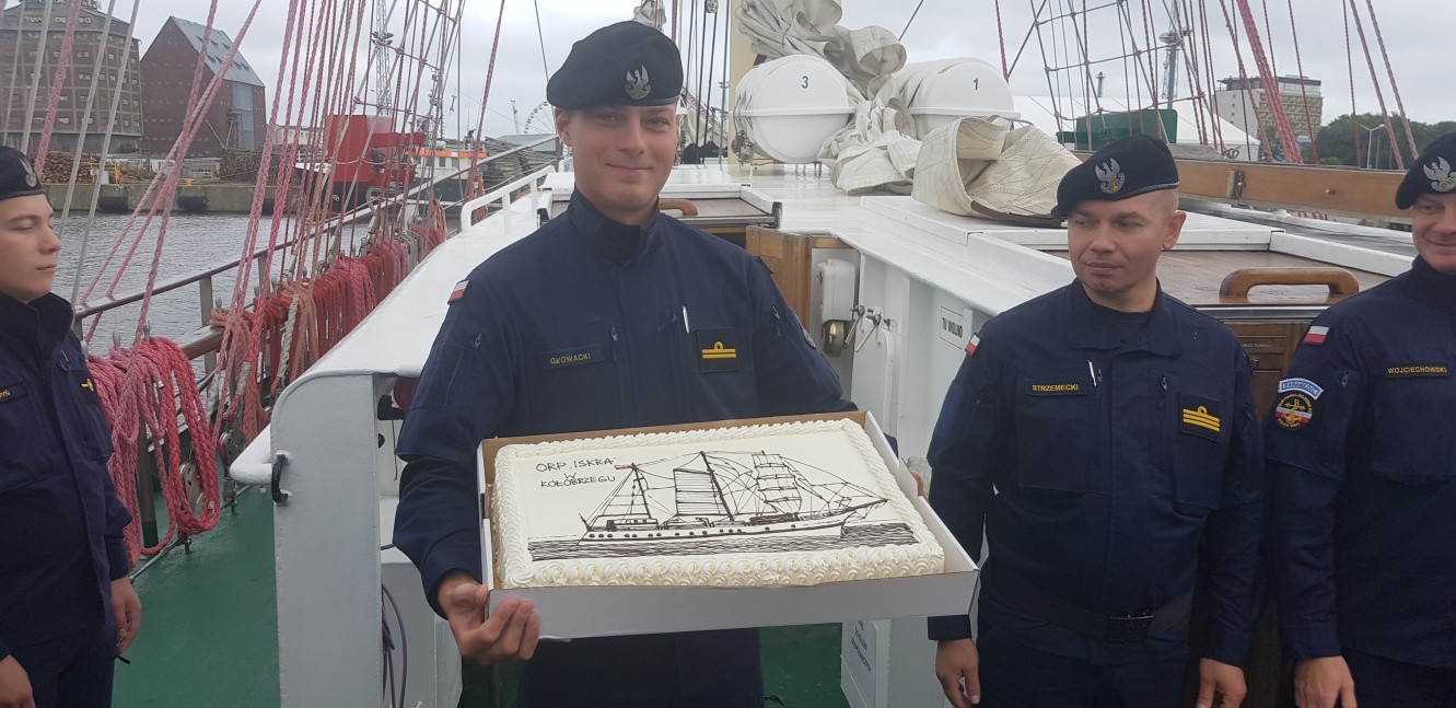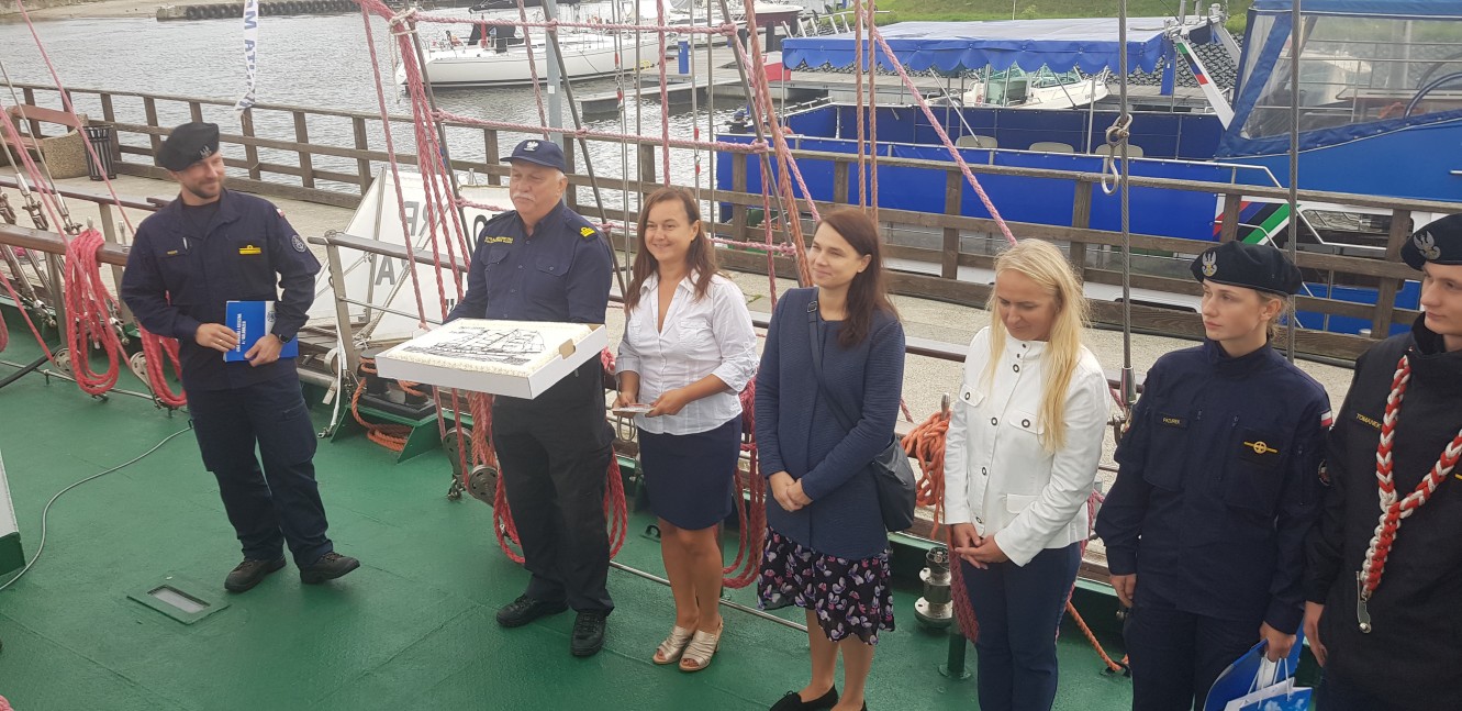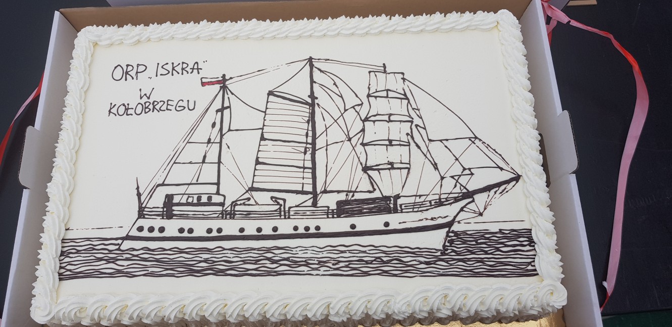 Na zakończenie komandor Marek Padjas wręczył piękny, okazały tort z wizerunkiem żaglowca. Tradycyjnie ufundował go Andrzej Mielnik.
