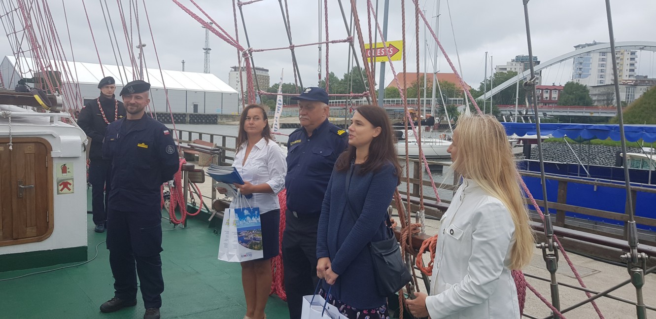 Wtorek, po zbiórce na podniesienie bandery na pokładzie okrętu zameldowała się Ilona Grędas – Wójtowicz zastępca prezydenta miasta ds. społecznych. Pozdrowiła załogę, podkreśliła, że ORP Iskra i jej załoga są zawsze oczekiwani w naszym mieście. Wspomniała również, że obyczaje i życie marynarskie nie są jej obce. Z racji, ze sama jest żoną oficera floty handlowej. Przekazała upominki dla załogi. Wręczono również dyplomy i nagrody dla zwycięzców konkursów organizowanych przez Ligę Morską i Rzeczną. Pierwsze miejsce zdobył Bartosz Żelazek, drugie Szymon Tomanek, a trzecie Katarzyna Pazurek.