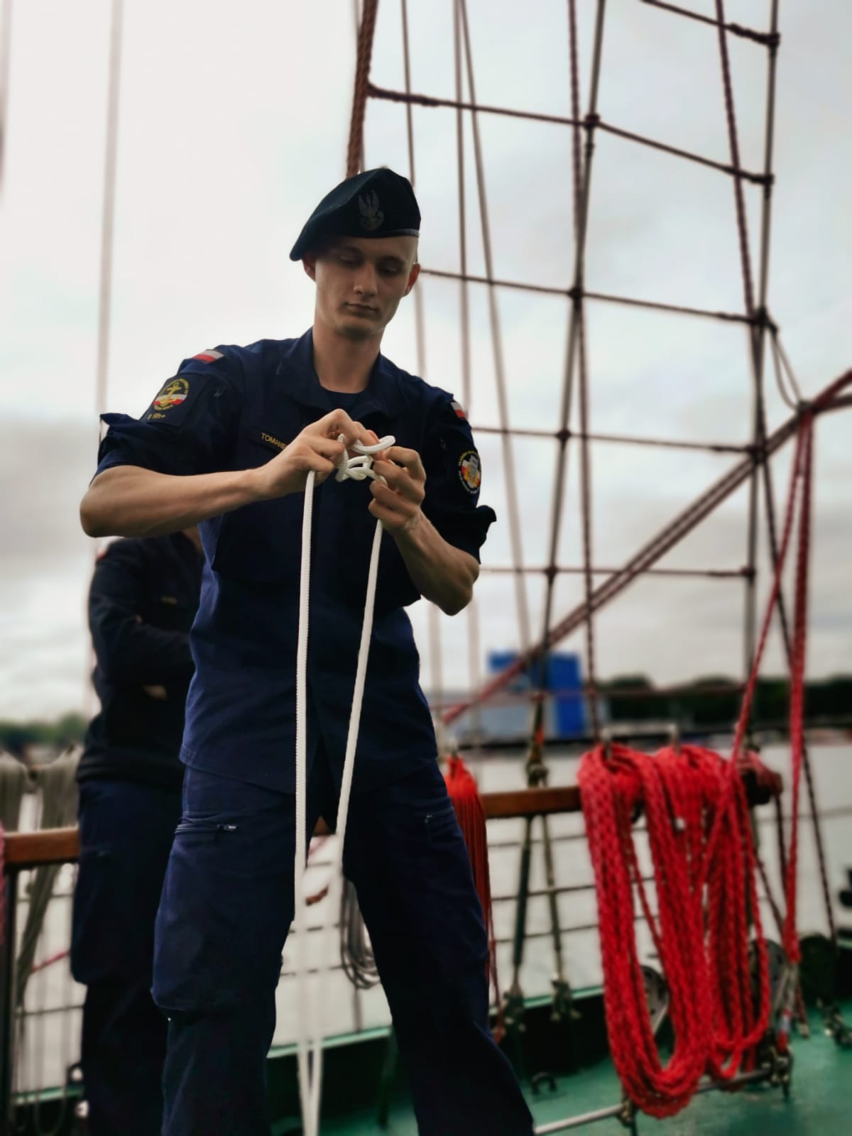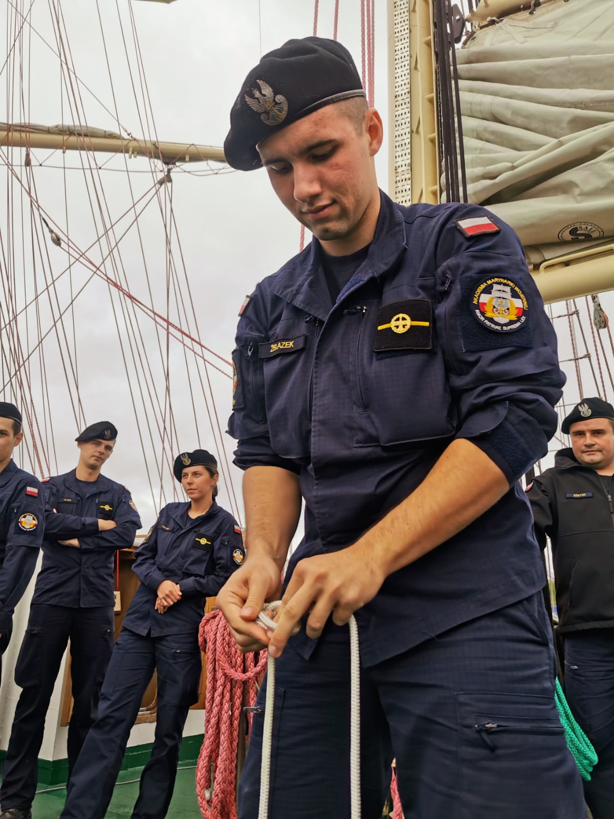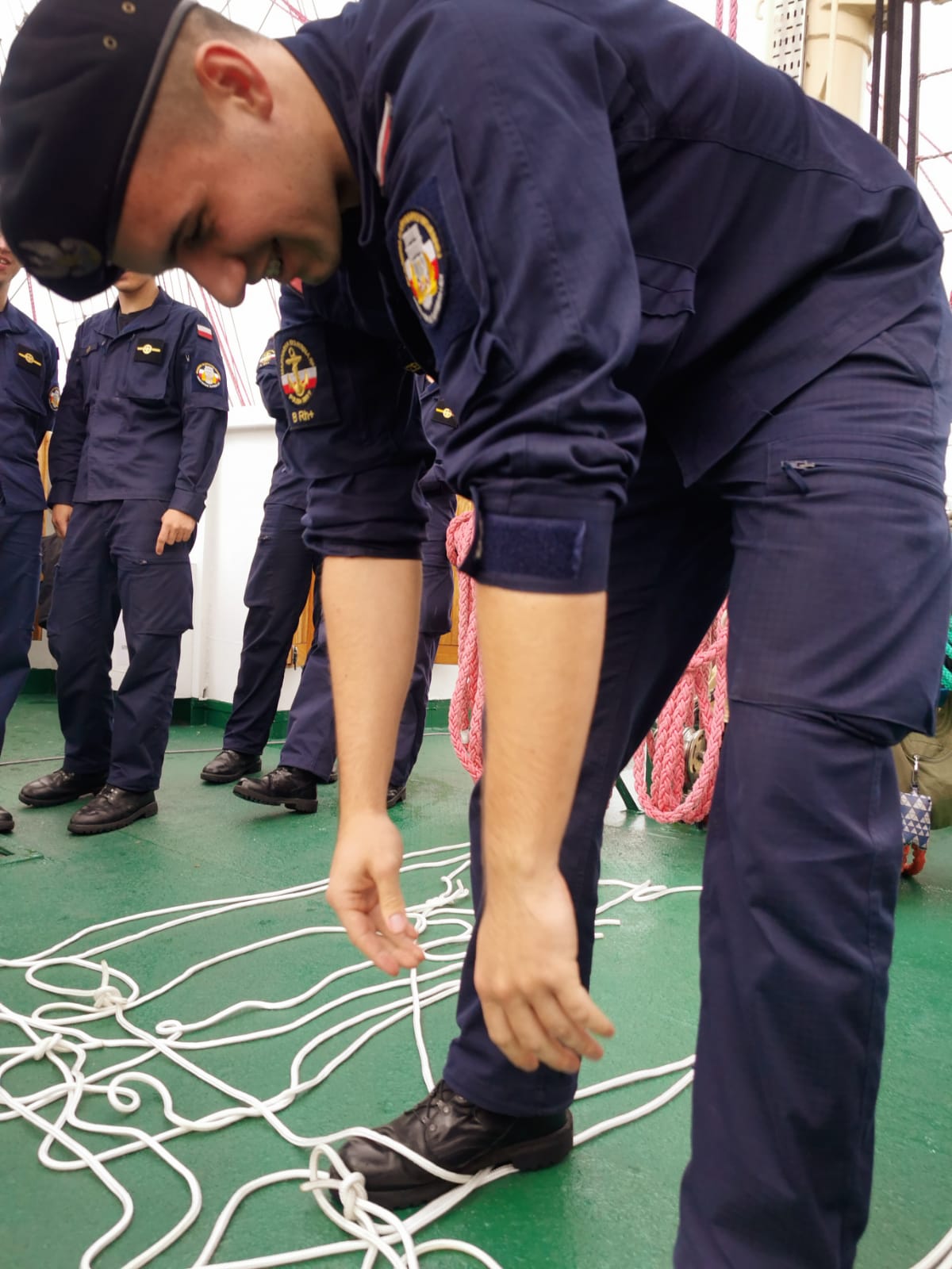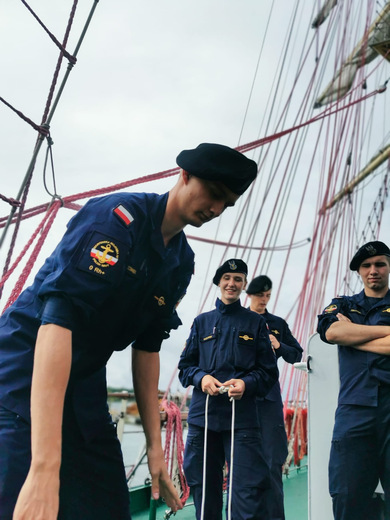 Po zwiedzaniu sama prezes kołobrzeskich ligowców Gabriela Antos przeprowadziła zawody marynarskie dla podchorążych uczestników 30. Zlotu jungów. Okazuje się, że rok studiów pozwolił na bardzo dobre żeglarskie przygotowanie. Wszyscy wzorowo wykonali poszczególne konkurencje.
