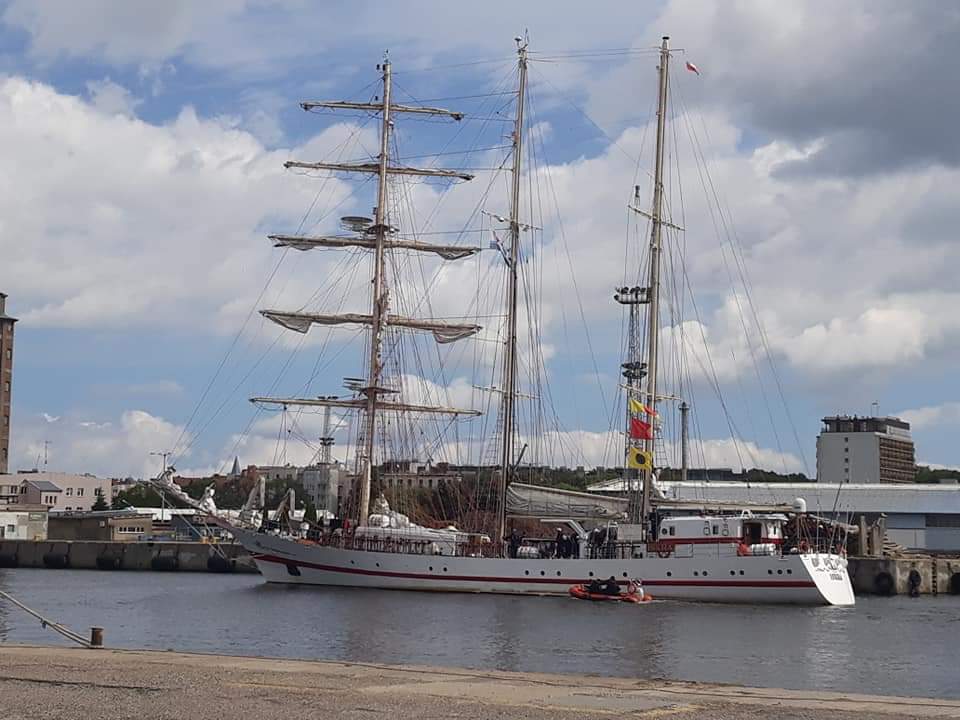 Nowa jednostka jest barkentyną. Fokmaszt ma ożaglowanie rejowe, grotmaszt – gaflowe, a bezanmaszt – bemudzkie. Zaprojektowany przez inżyniera Zygmunta Chorenia okręt ma za sobą gruntowny remont, który przeszedł w gdańskiej stoczni Remontowa. Po 3 latach przerwy żaglowiec wyruszył w rejs szkoleniowy. Pierwszym z odwiedzanych portów był Kołobrzeg. W niedzielę, 5 lipca, okręt wraz załogą stałą oraz podchorążymi pierwszego roku Akademii Marynarki Wojennej, zacumowała przy Nabrzeżu Promowym. To 31. zawinięcie. Na gości oczekiwali gospodarze miasta i powiatu, prezydent Anna Mieczkowska i starosta Tomasz Tamborski. Liga Morska i Rzeczna przekazała załodze okolicznościowy tort ufundowany przez Andrzeja Mielnika. Na kapitańską kawę zaprosił ich nowy dowódca kpt. mar. Michał Rębiś, któremu towarzyszył jego poprzednik kmdr ppor. Jacek Miłowski. W południe kapelan AMW por. mar. Tomasz Wojciechowski odprawił mszę świętą w intencji zmarłego 18 czerwca Antoniego Szarmacha. Załogą i podchorążymi opiekowali się członkowie kołobrzeskiej Ligi Morskiej i Rzecznej. Bogaty w atrakcje pobyt miał na celu pokazanie miasta i okolic oraz zapoznanie podchorążych z kołobrzeskim środowiskiem żeglarskim. Zwiedzono miasto, wystawy Muzeum Oręża Polskiego, w tym ekspozycję zimnowojenną w Podborsku. Złożono wiązanki kwiatów przy pomniku byłego Stalagu Luftwaffe IV w Modrolesie i przy pomniku kontradmirała Stanisława Mieszkowskiego. W Harcerskim Ośrodku Morskim Tadeusz Waśko i Mira Urbaniak wprowadzili gości w świat tradycji polskiej floty i obyczajów kaperskich. Dowódca i zastępca dowódcy uczestniczyli w spotkaniu z Anną Mieczkowską. Pamiątką spotkania był Album poświęcony dywizjonowi zabezpieczenia hydrograficznego podarowany Pani Prezydent. Rewanżem była artystyczna fotografia przedstawiająca nasze miasto.