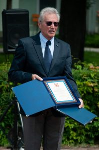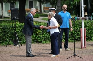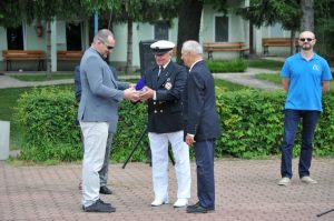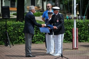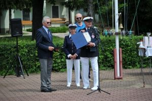 W imieniu Okręgu Mazowieckiego Ligi Morskiej i Rzecznej. Prezes kpt. ż. ś. mgr Andrzej POTAPOWICZ wręczył Komandorowi Klubu dyplom „PRO MEMORIA” w uznaniu zasług Klubu Żeglarskiego WAT, złożył gratulacje i życzenia dalszych sukcesów w działalności stowarzyszenia.