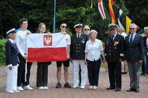 W czasie uroczystości, studenci WAT, żeglarze prezentowali replikę bandery statku szkolnego STS LWÓW.