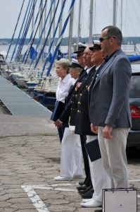 Pokrótce, przedstawiła również historię pierwszego Polskiego Statku Szkolnego STS LWÓW Szkoły Morskiej w Tczewie ( 1921-1930), przypomniała wkład gen. Mariusza Zaruskiego jako pioniera żeglarstwa sportowego, narciarstwa, przyjaciela i wychowawcy młodzieży, założyciela i I-go Komandora Yacht Klubu Polski w 1924 roku, a następnie, odczytała wiersz gen. Mariusza Zaruskiego ofiarowany załodze statku szkolnego LWÓW w dniu 13 maja 1925 przez autora, który cytujemy poniżej: