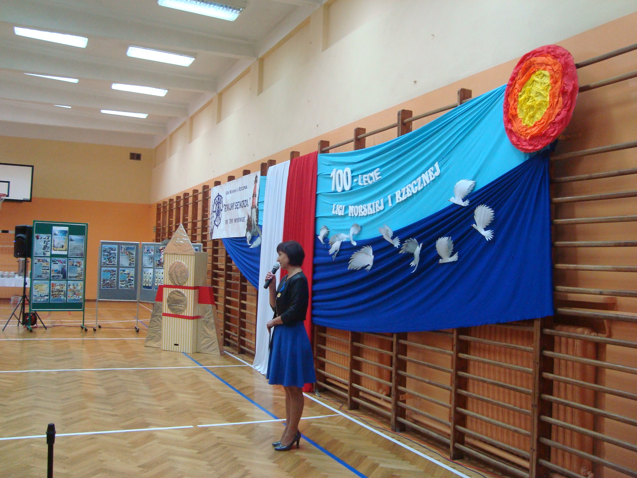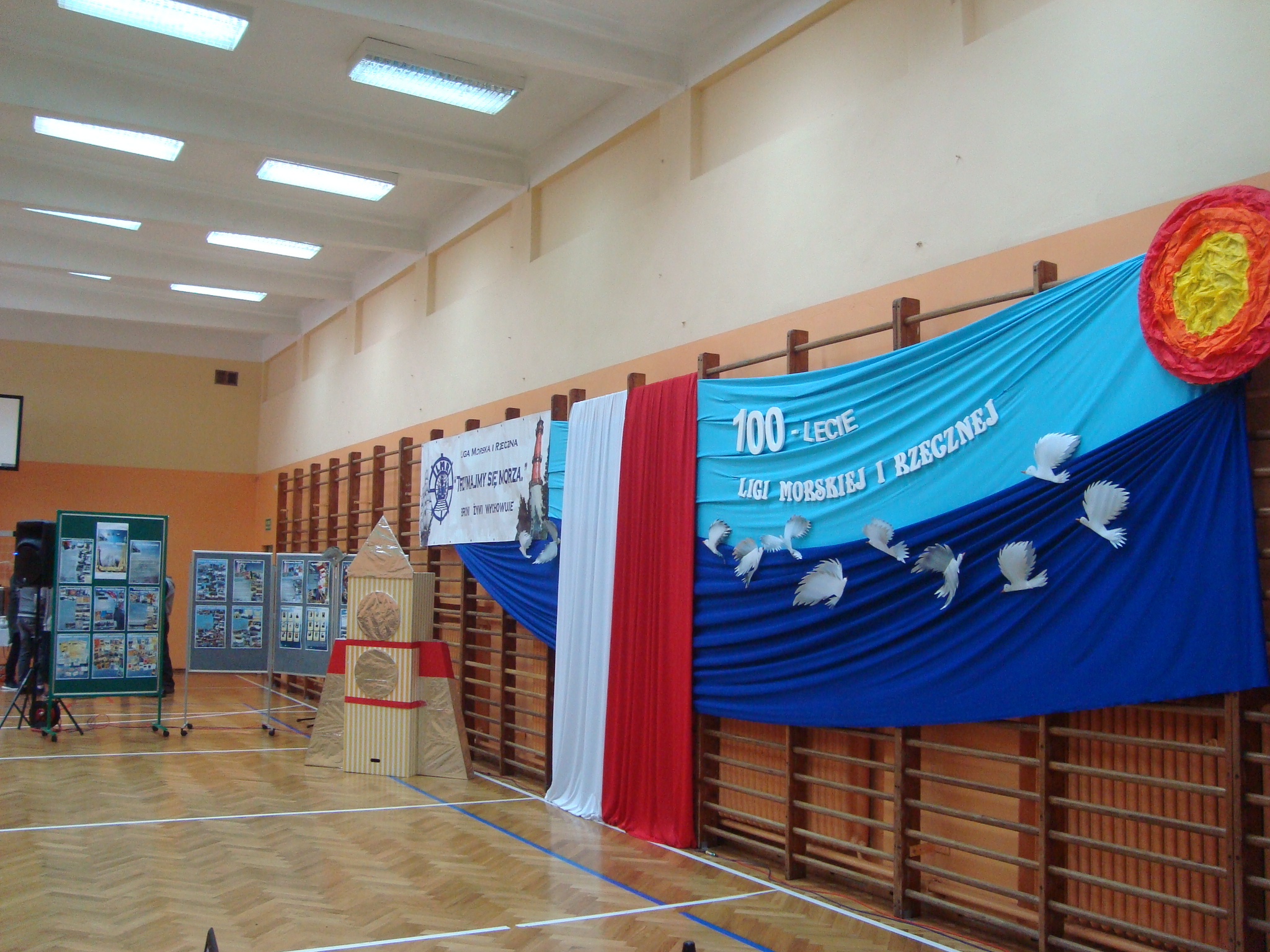 i Rzecznej oraz jej 15-letnią działalność w placówce oświatowej u stóp Beskidu Śląskiego. Na tle pięknej morskiej scenografii stworzonej przez Małgorzatę Błachut i Beatę Stoszek- „wilki morskie” zwane od żółtych koszulek „jajeczka”, zaprezentowały przeszłość i terażniejszość, osiągnięcia i zadania Stowarzyszenia oraz zaprosiły do zwiedzenia okolicznościowej wystawy. Liczne, choć nie wszystkie fotografie przywoływały wspomnienia morskich, rzecznych i górskich eskapad, zaś dyplomy, nagrody i puchary dokumentowały sukcesy podczas corocznych konkursów np.:”Młodzież na Morzu”