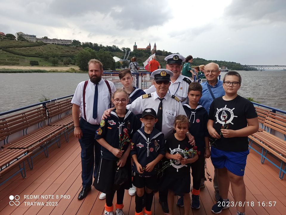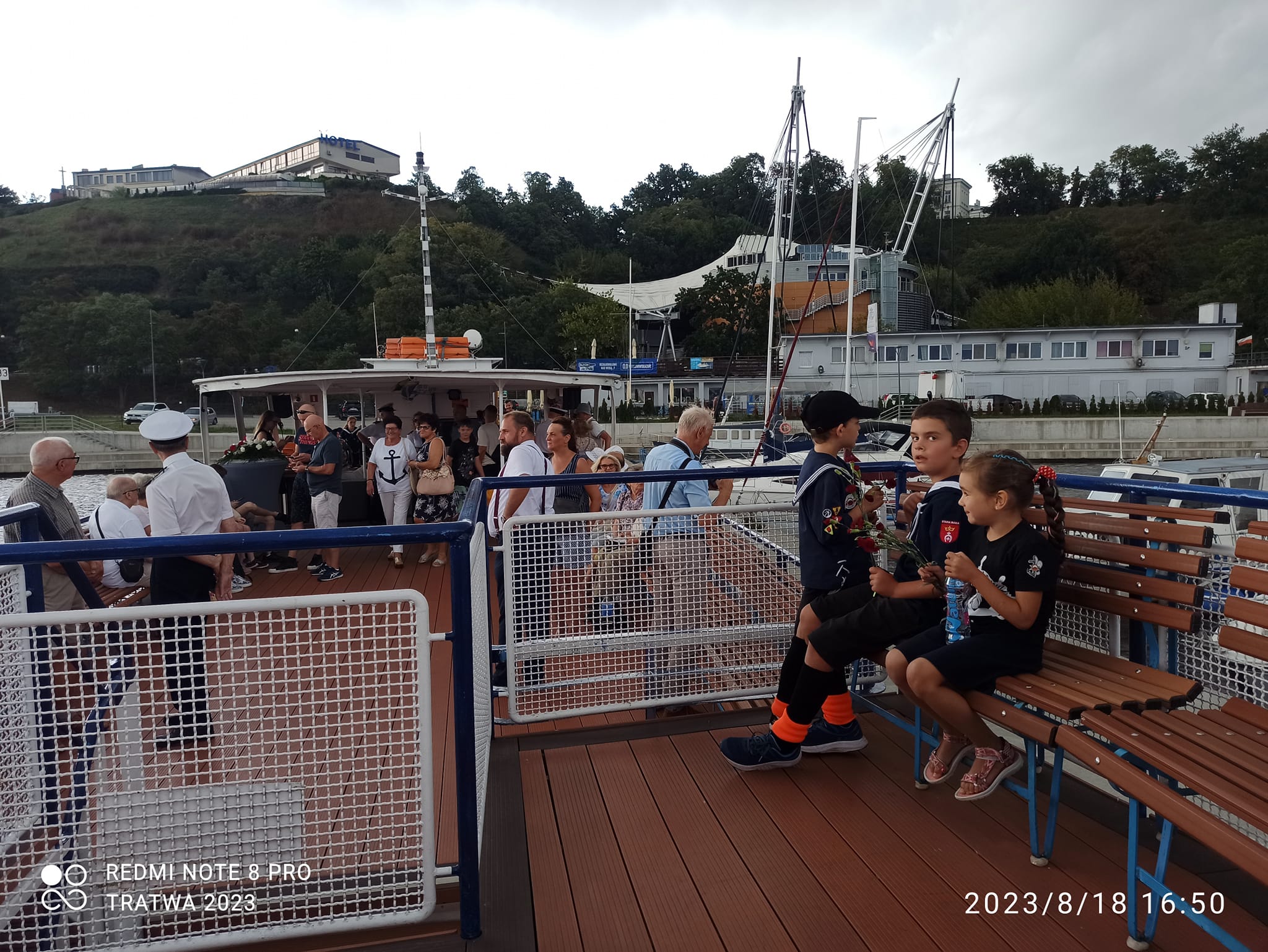 Jak zawsze, pośród licznych uczestników tegoż patriotycznego „Rejsu Pamięci”, nie zabrakło harcerzy z wodnej drużyny „Białe Wilki” z Maszewa k/ Płocka, razem z przebywającymi na wakacjach w Płocku, harcerzami z Francji pełniącymi służbę w ramach wolontariatu – w służbie PCK w Płocku. Było ludziom Wisły bardzo miło, iż wielu Płocczan wzięło udział w tym patriotycznym „Rejsie Pamięci” – by podziękować wdzięcznym sercem i cichą modlitwą – bohaterskim marynarzom Flotylli Wiślanej – za ich heroiczny wysiłek i odwagę – walczących. w nierównej walce, z bolszewicką nawałą, plądrującą nasze miasto, którego historia jest Wisłą pisana – tj. książęce miasto Płock, które to miasto za bezgraniczną odwagę, wolę walki i wykazany heroizm i wiarę w zwycięstwo podczas obrony miasta – zostało odznaczone przez marszałka Józefa PIŁSIDSKIEGO – „Krzyżem Walecznych”.