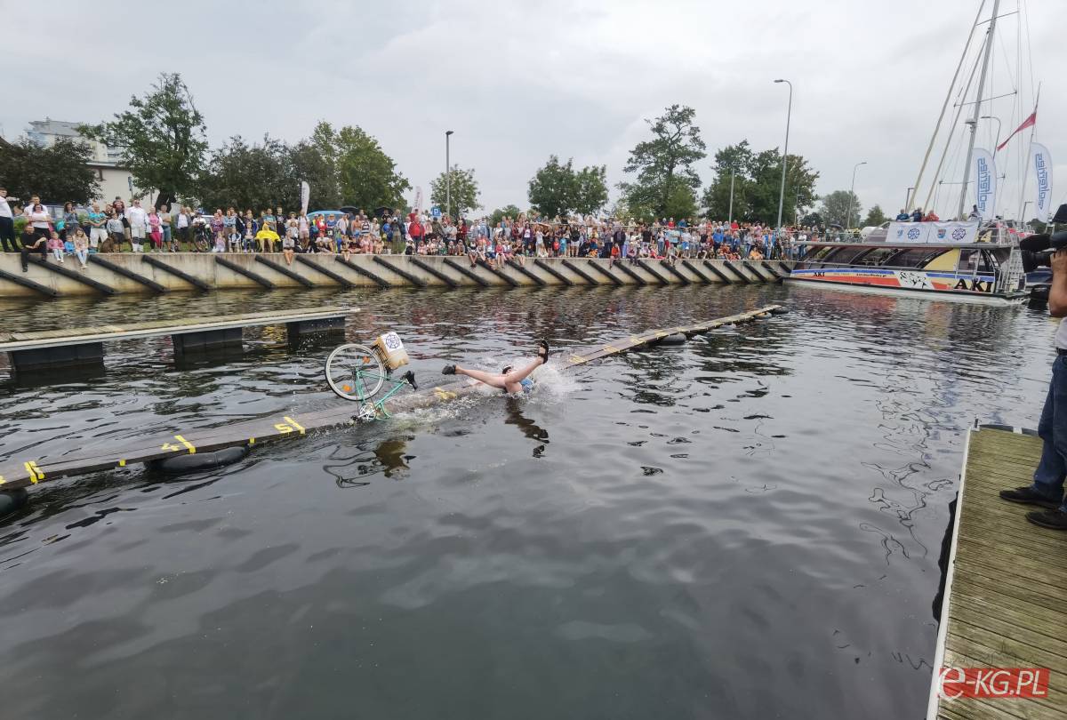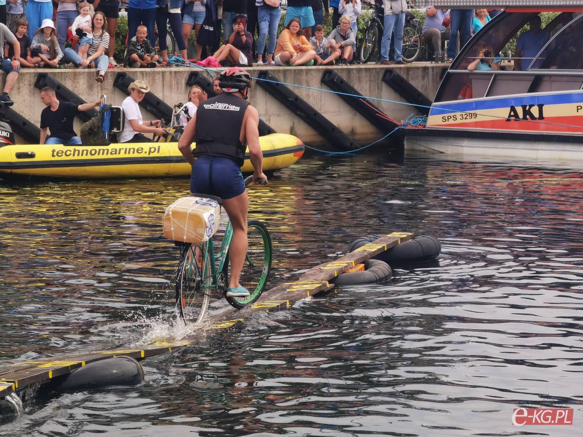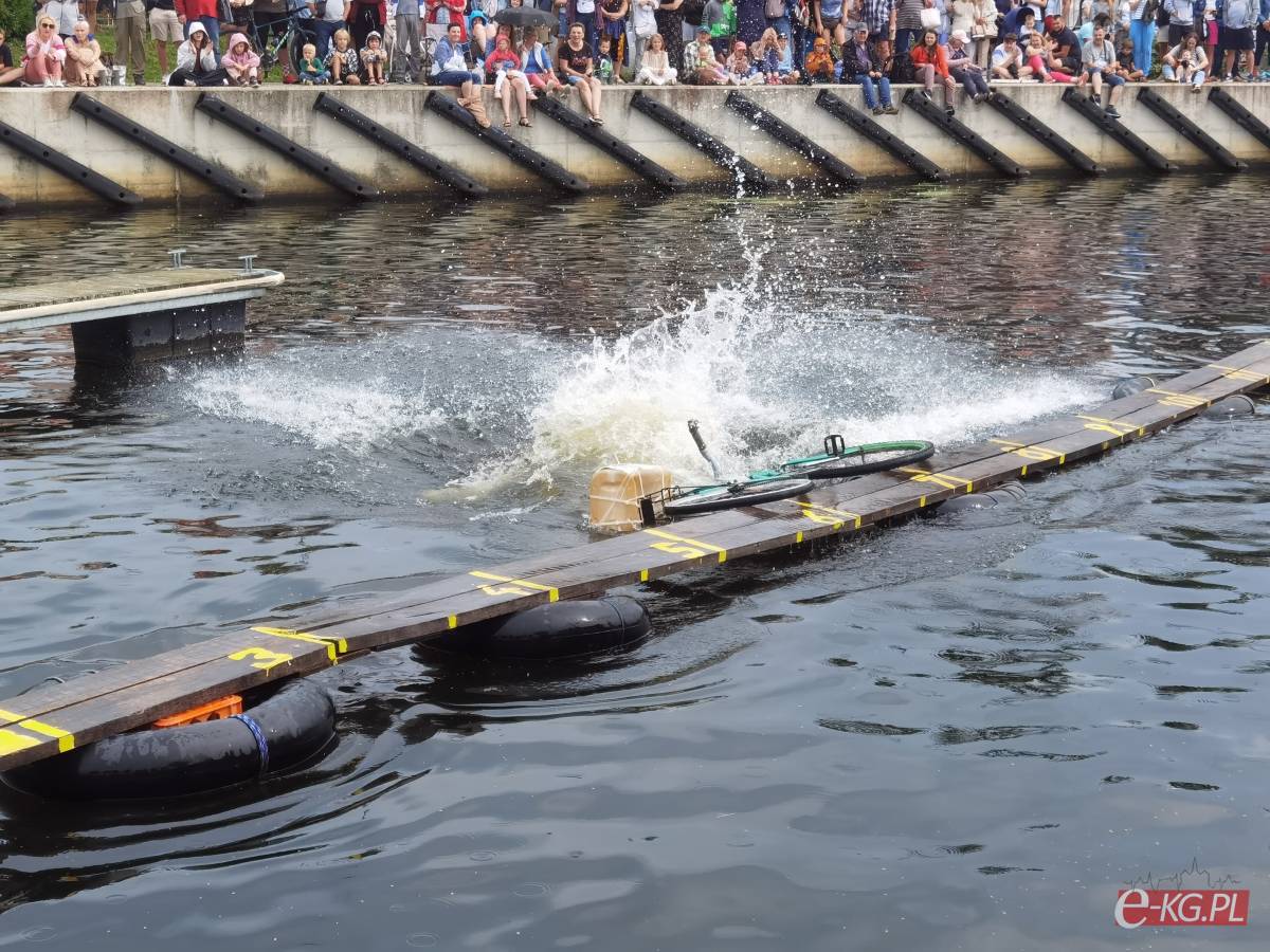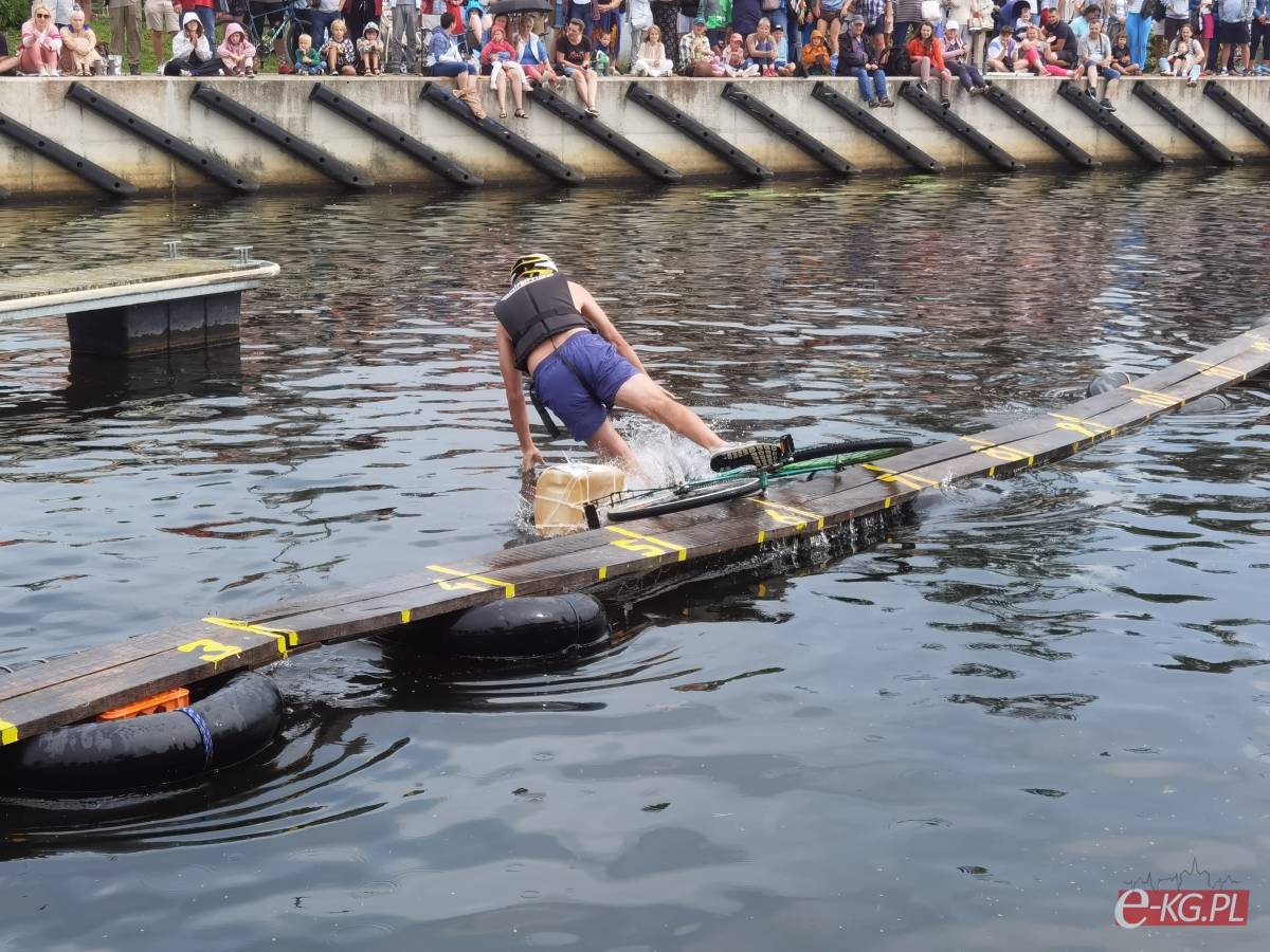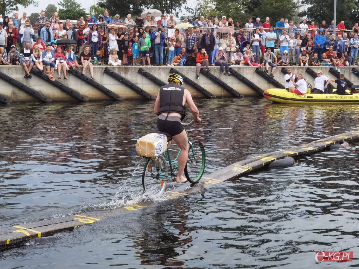 Zawody w jeździe rowerem po desce na wodzie stały się tradycją naszego miasta. Zasady są proste. Trzeba wsiąść na rower i przejechać 21 metrową deskę, która leży na dętkach, a te na wodzie. Ochotników nie brakuje. Każdego roku poziom zawodów jest coraz wyższy. Niektórzy po przejechaniu dystansu wykonują efektowne salta i robinsonady. W tym roku wystartowało 36 śmiałków z Polski, Ukrainy, Anglii i Portugalii. Każdy z zawodników przejazd kończył w wodzie i bez względu na to jaką odległość pokonał, każdemu z nich dopisywał humor.