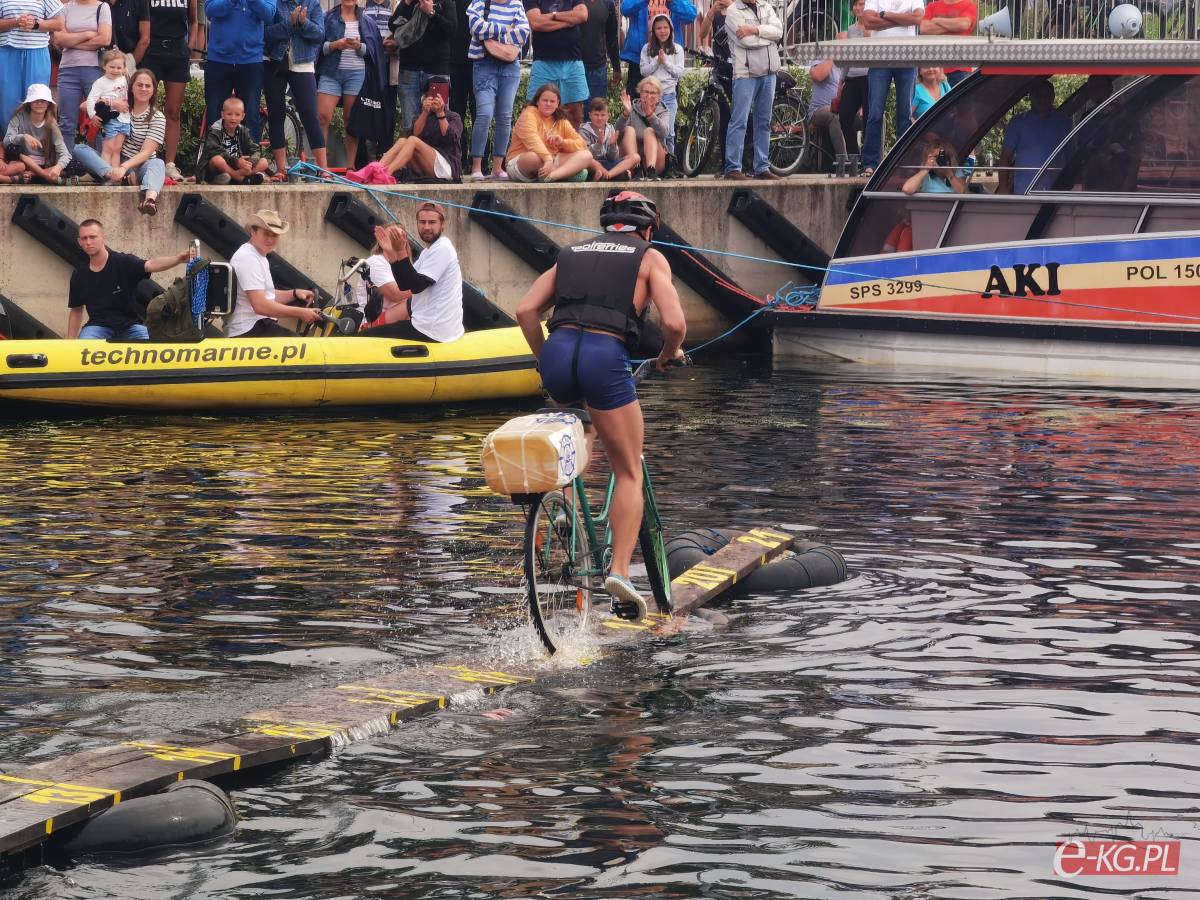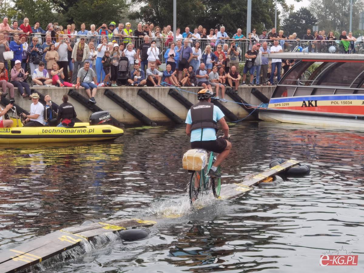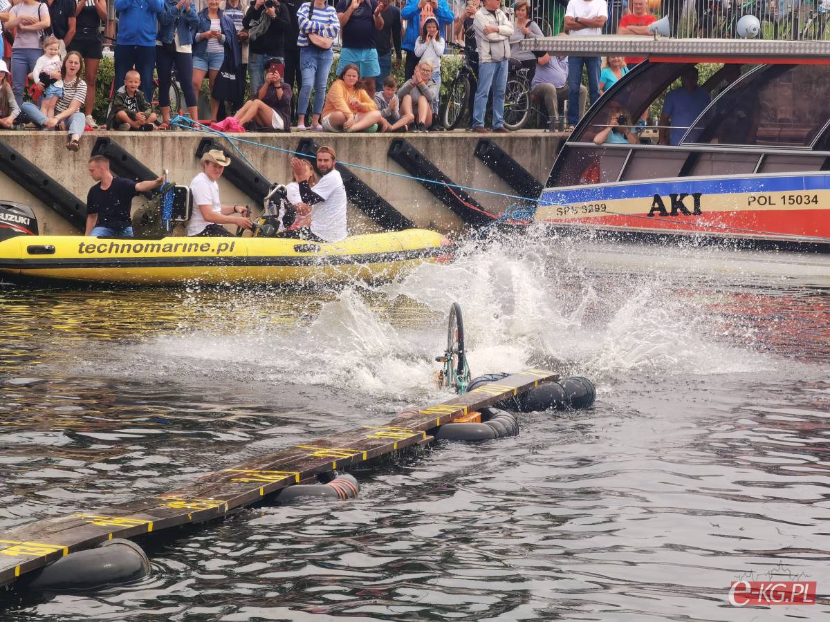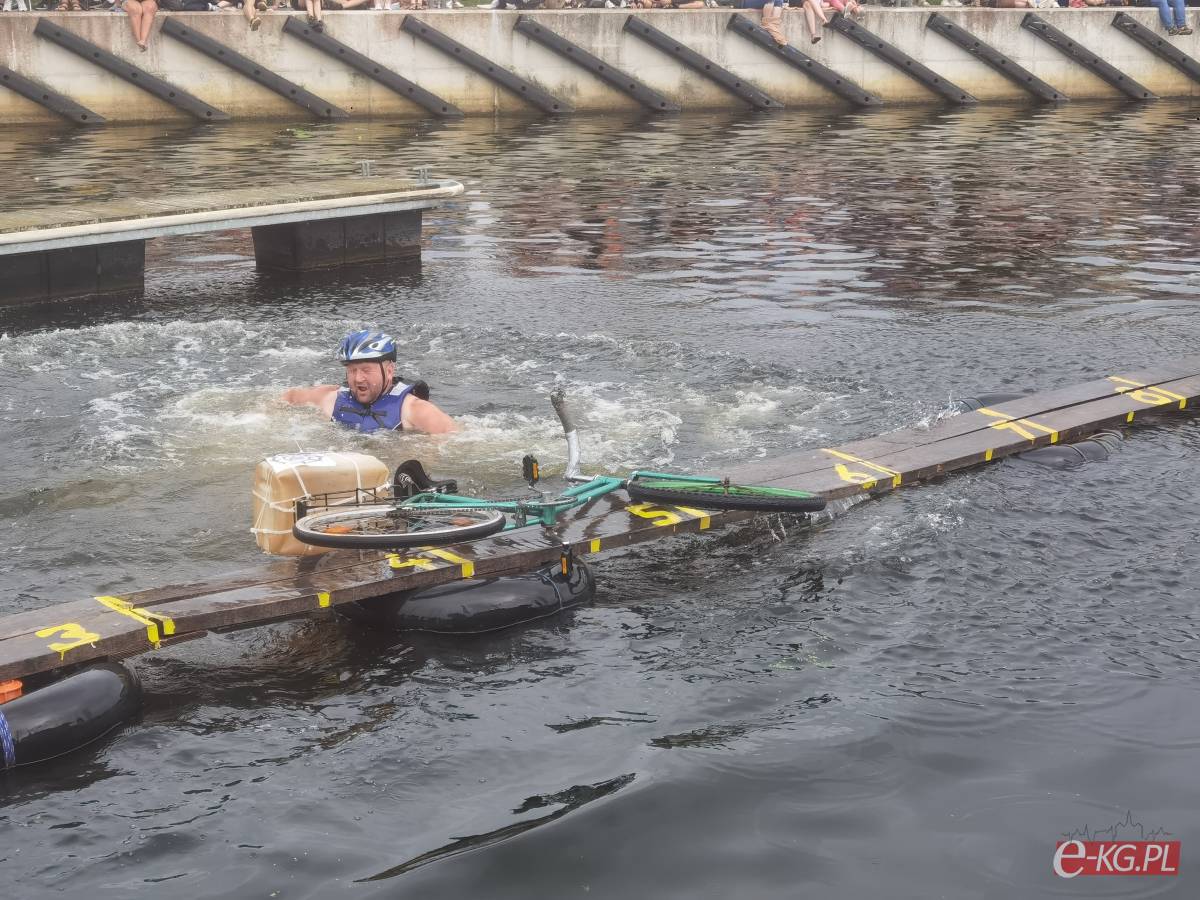 Zawody w jeździe rowerem po desce na wodzie stały się tradycją naszego miasta. Zasady są proste. Trzeba wsiąść na rower i przejechać 21 metrową deskę, która leży na dętkach, a te na wodzie. Ochotników nie brakuje. Każdego roku poziom zawodów jest coraz wyższy. Niektórzy po przejechaniu dystansu wykonują efektowne salta i robinsonady. W tym roku wystartowało 36 śmiałków z Polski, Ukrainy, Anglii i Portugalii. Każdy z zawodników przejazd kończył w wodzie i bez względu na to jaką odległość pokonał, każdemu z nich dopisywał humor.