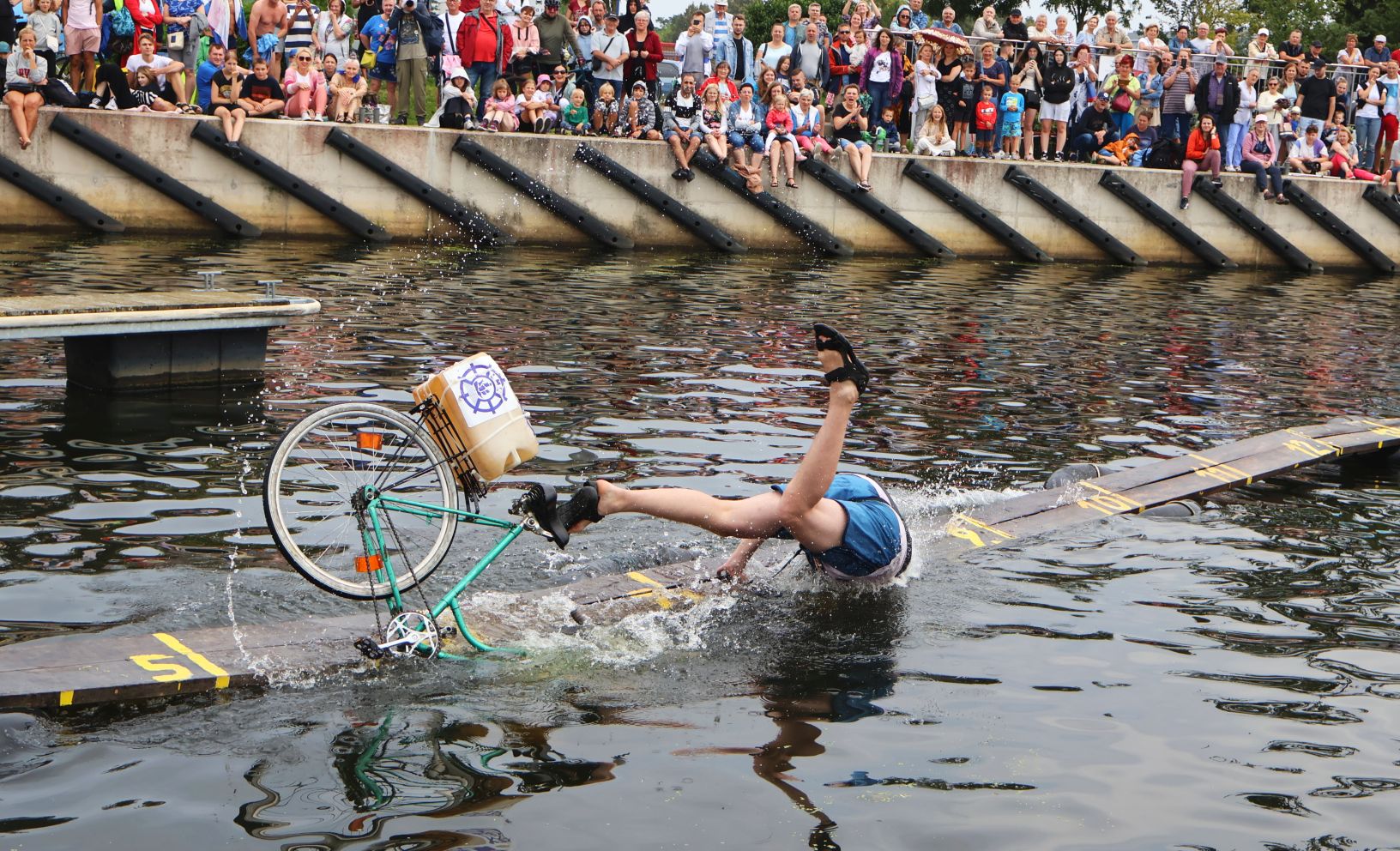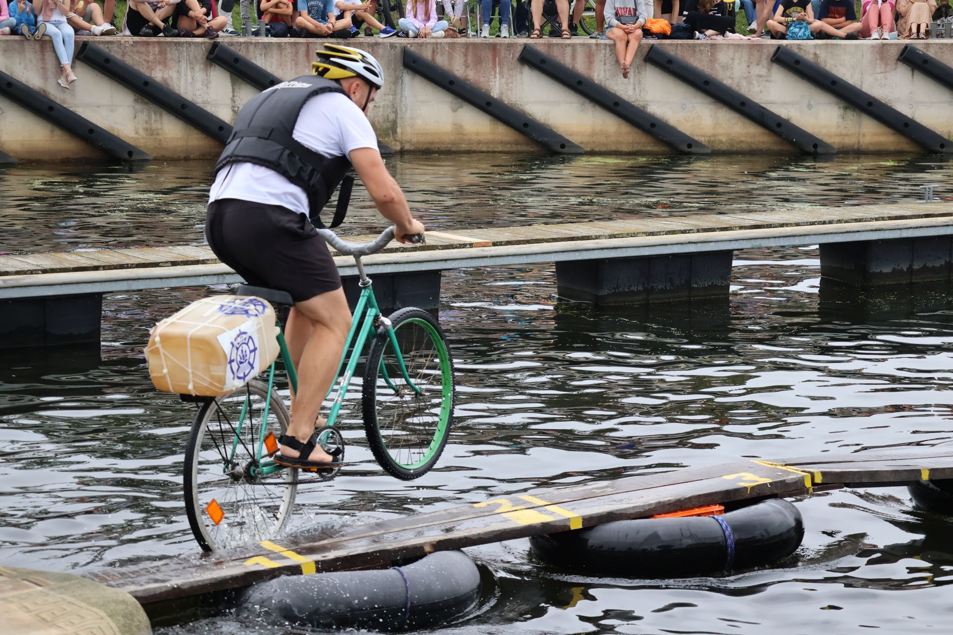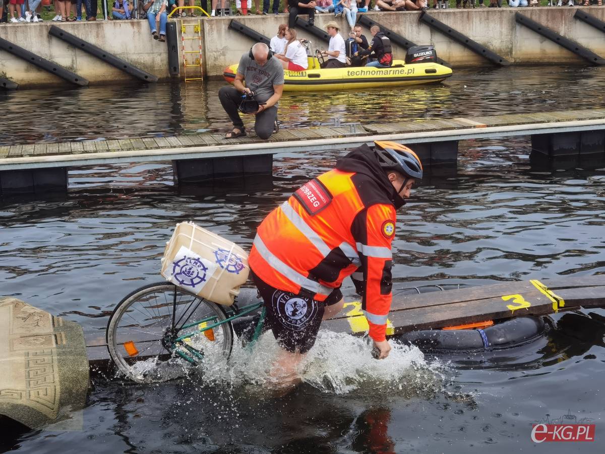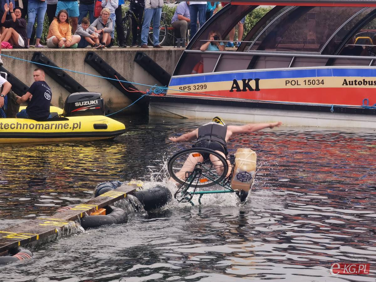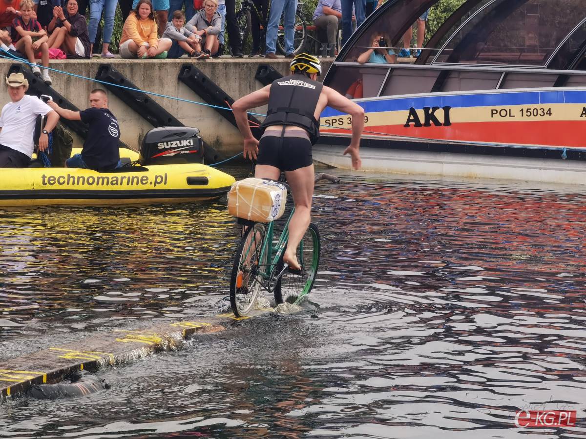 Zawody w jeździe rowerem po desce na wodzie stały się tradycją naszego miasta. Zasady są proste. Trzeba wsiąść na rower i przejechać 21 metrową deskę, która leży na dętkach, a te na wodzie. Ochotników nie brakuje. Każdego roku poziom zawodów jest coraz wyższy. Niektórzy po przejechaniu dystansu wykonują efektowne salta i robinsonady. W tym roku wystartowało 36 śmiałków z Polski, Ukrainy, Anglii i Portugalii. Każdy z zawodników przejazd kończył w wodzie i bez względu na to jaką odległość pokonał, każdemu z nich dopisywał humor.