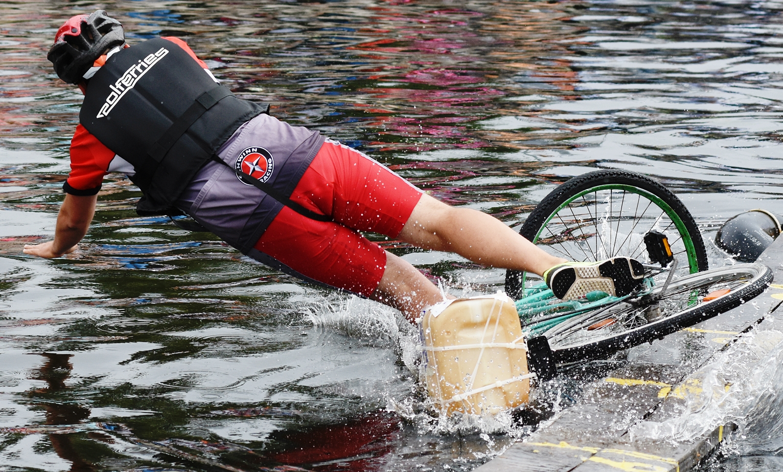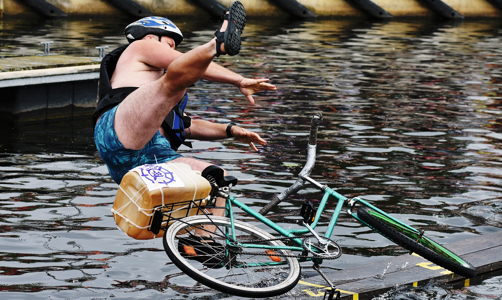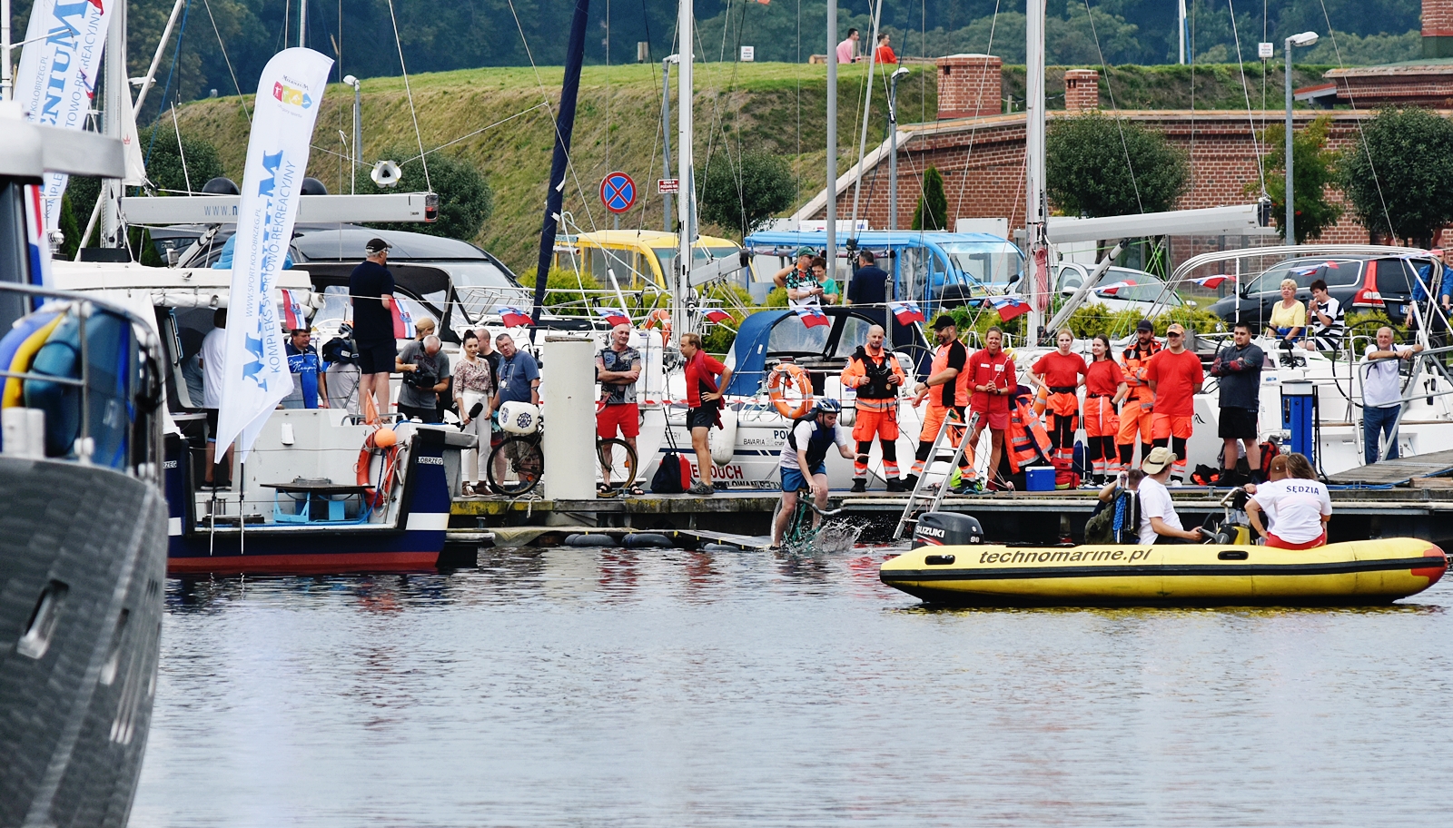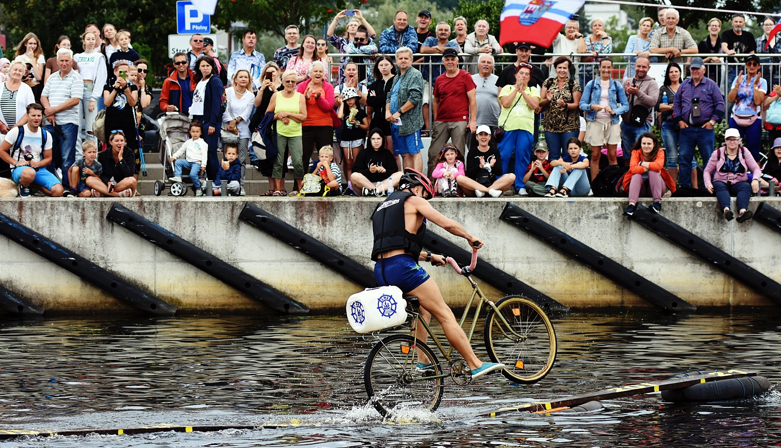 Zawody w jeździe rowerem po desce na wodzie stały się tradycją naszego miasta. Zasady są proste. Trzeba wsiąść na rower i przejechać 21 metrową deskę, która leży na dętkach, a te na wodzie. Ochotników nie brakuje. Każdego roku poziom zawodów jest coraz wyższy. Niektórzy po przejechaniu dystansu wykonują efektowne salta i robinsonady. W tym roku wystartowało 36 śmiałków z Polski, Ukrainy, Anglii i Portugalii. Każdy z zawodników przejazd kończył w wodzie i bez względu na to jaką odległość pokonał, każdemu z nich dopisywał humor.