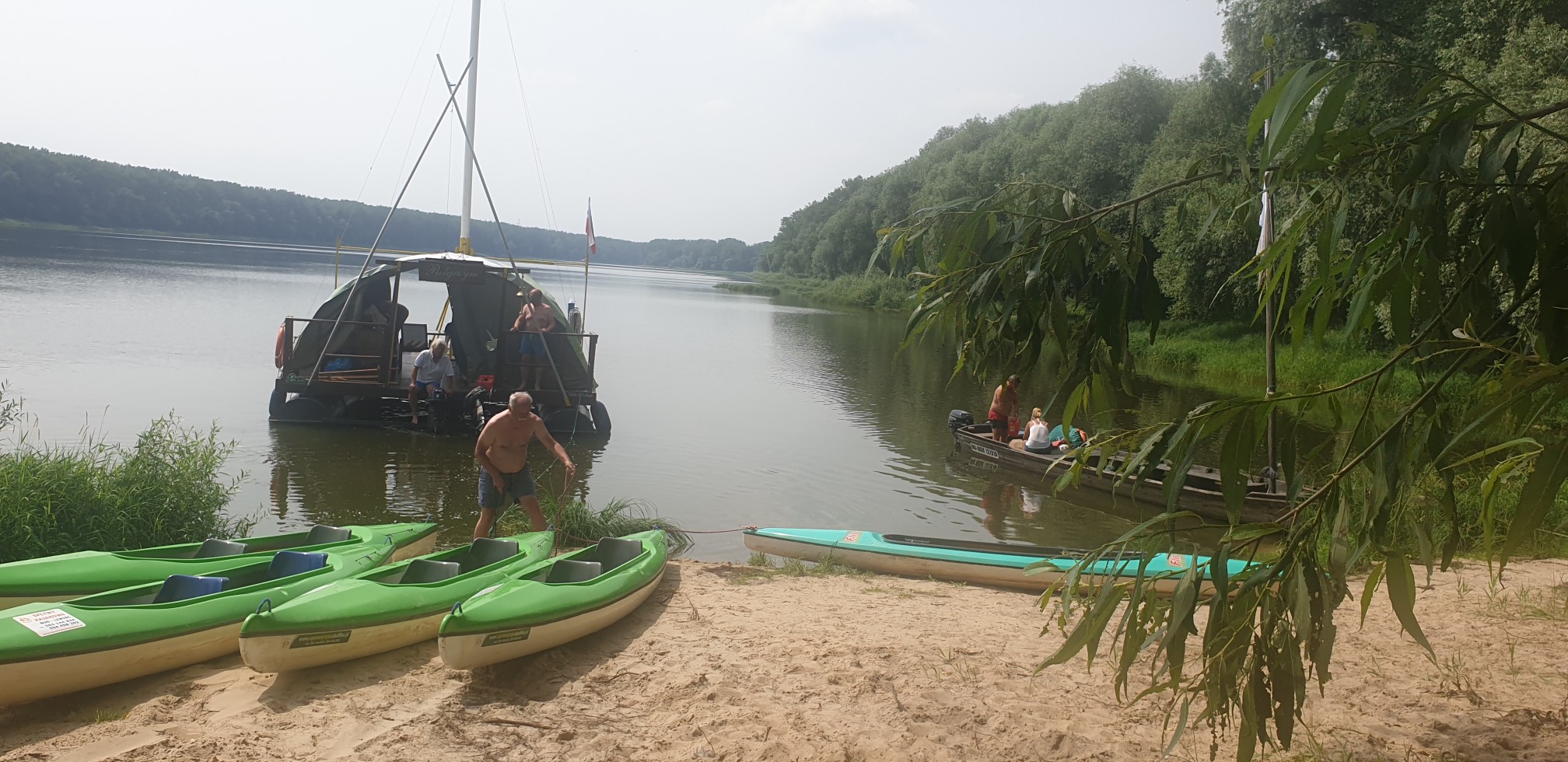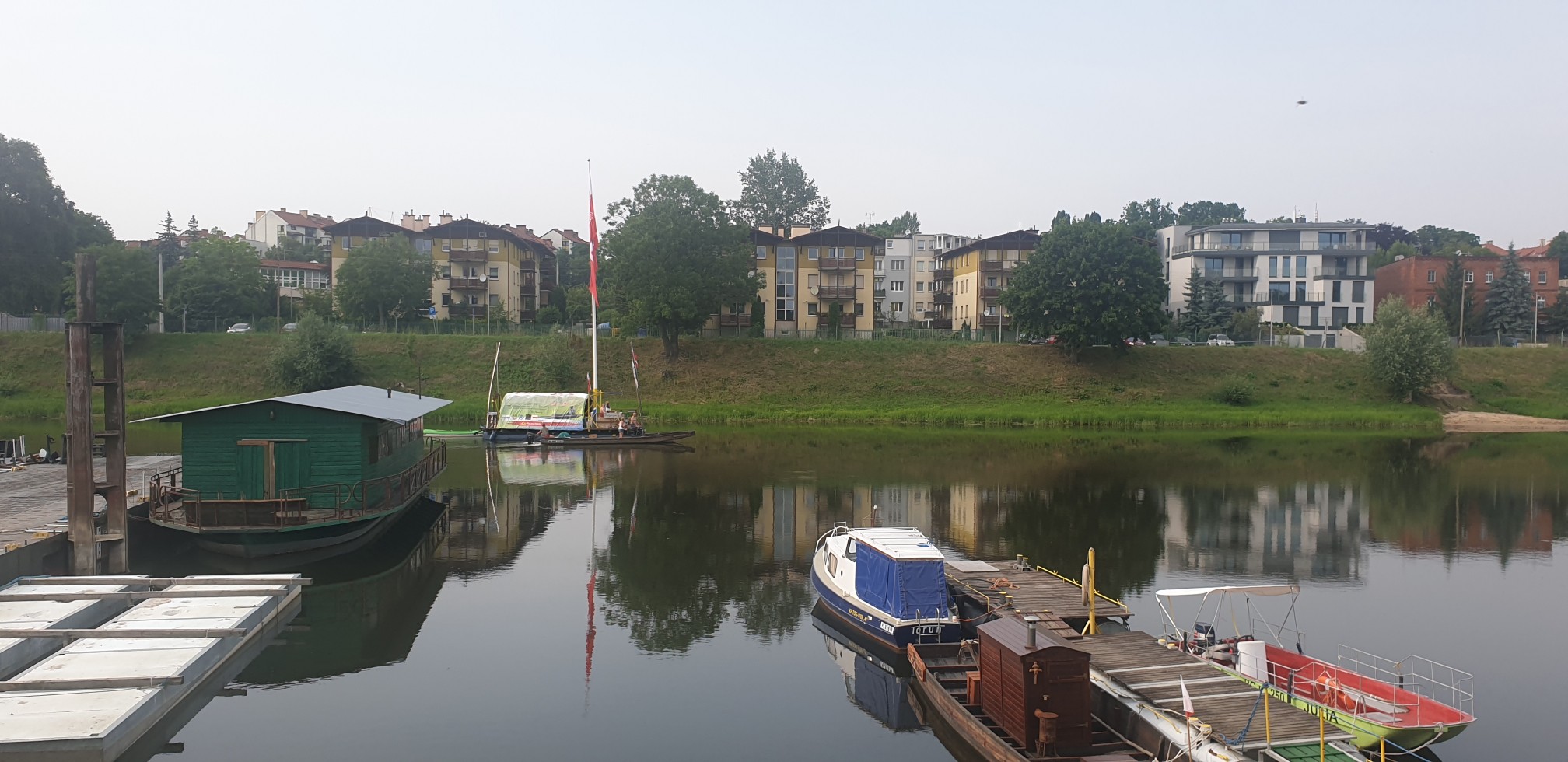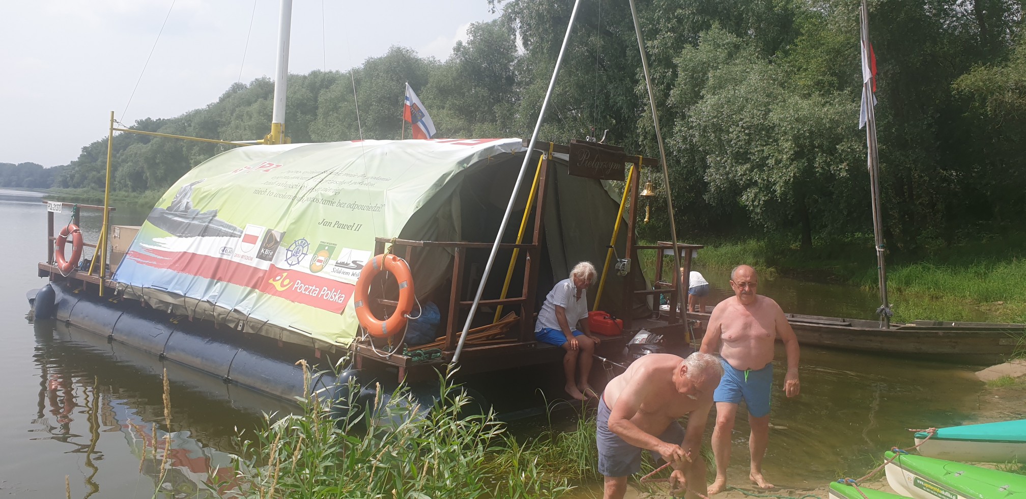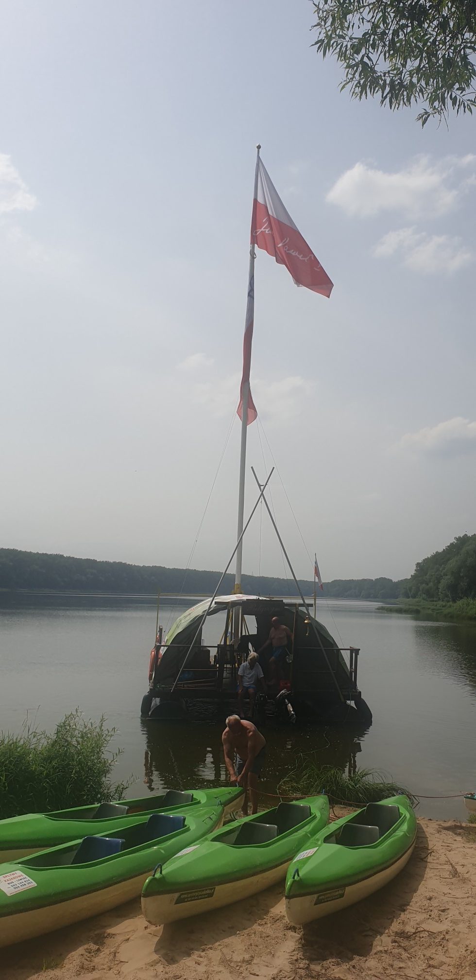 Ostatni dzień eskapady Pielgrzyma. Poranek na przystani wioślarskiej. Za chwilę wodowanie kajaków na których część naszej załogi popłynie do Portu Drzewnego. Szykujemy sprzęt wiosła, kapoki i ruszamy na Wisłę. Otaczamy tratwę i w takim porządku, pełni radości wiosłujemy z nurtem.