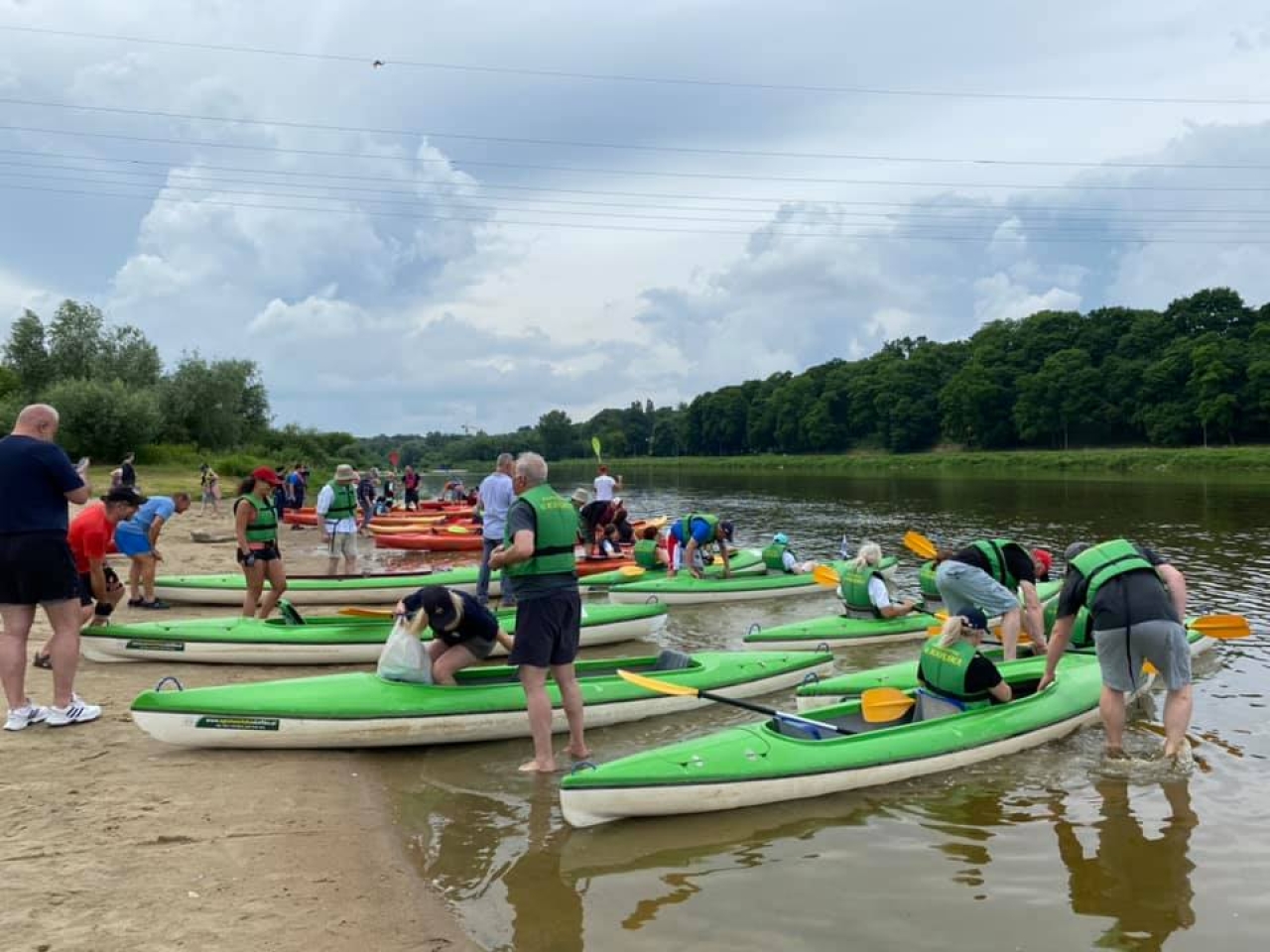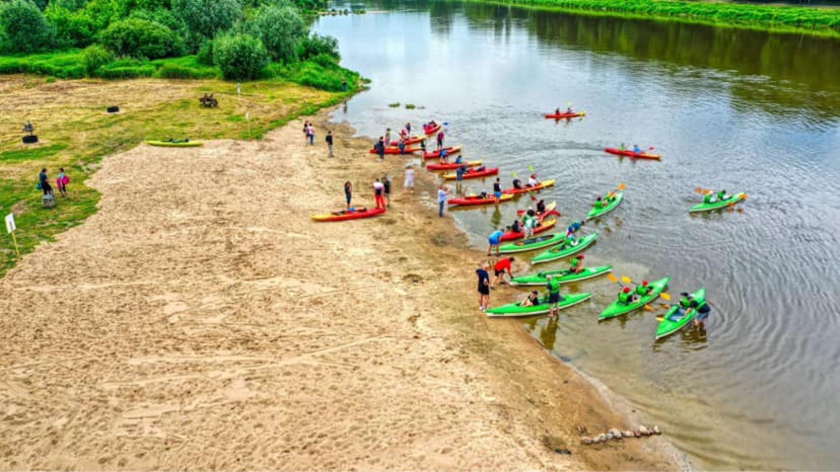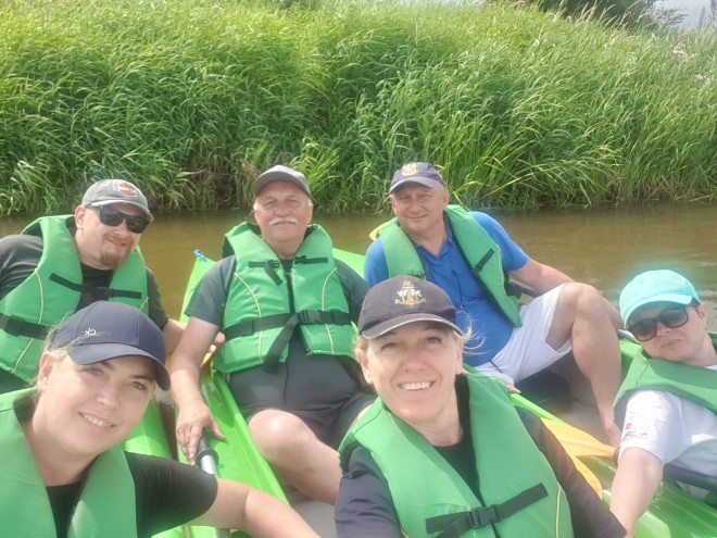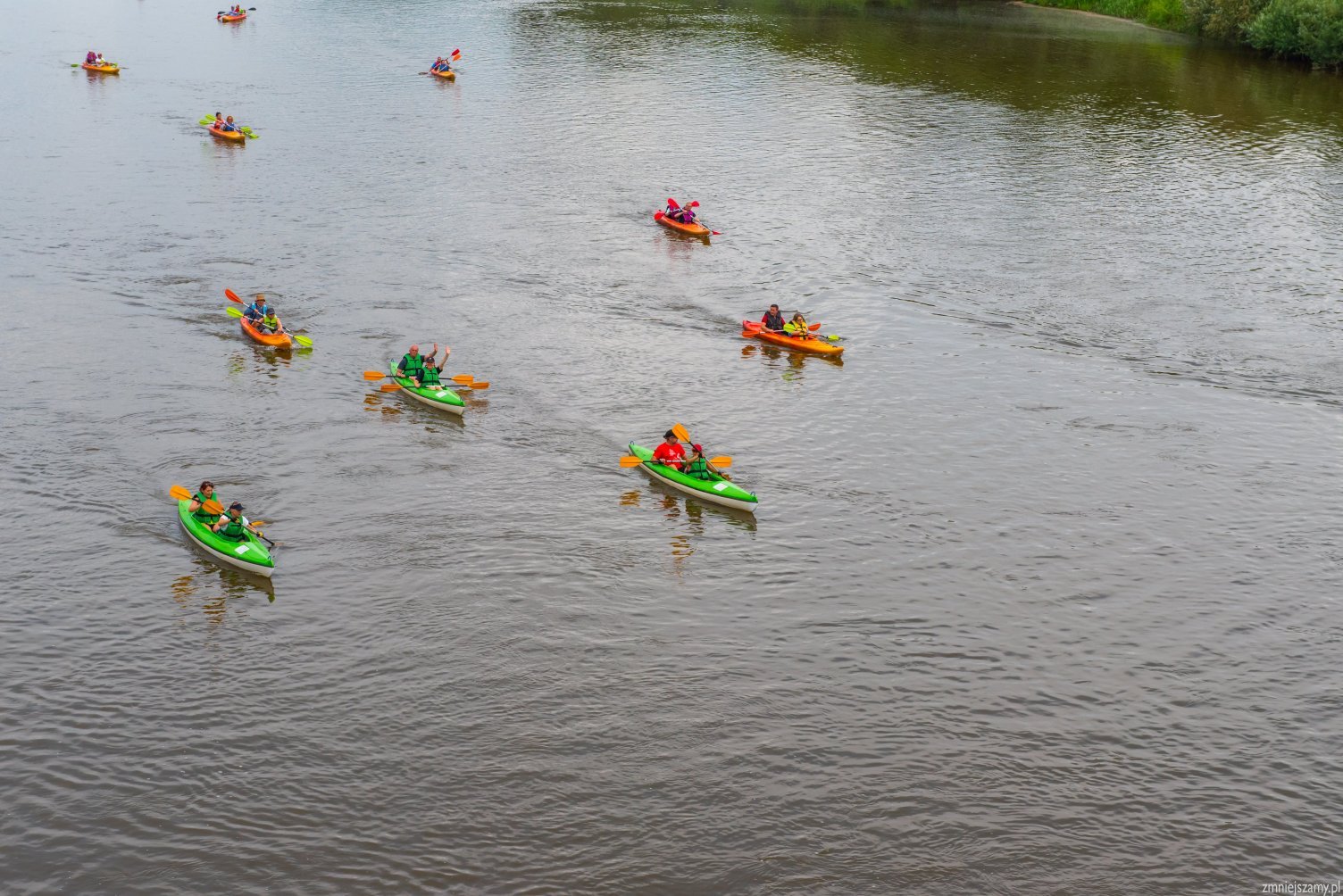 Ruszają, kawalkada kajaków wyrusza w kierunku Popowa. Nasza żegluga zaczyna się na 34,5 km do ujścia Bugu do Narwi. Przepływamy pod mostem kolejowym na linii Ostrołęka – Tłuszcz. Niby zwykły żelazny most kolejowy, ale to właśnie na nim kręcone były sceny do filmów: „Katyń” – Andrzeja Wajdy, ”Przedwiośnie” – Filipa Bajona, a także do „Czterech Pancernych”. Rzeka Bug doskonale nadaje się do rozpoczęcia przygody z kajakiem i do spływów rodzinnych. Uznawana jest za jeden z ciekawszych szlaków kajakowych w Polsce. W Europie jest to jedna z ostatnich tak dużych rzek o praktycznie nienaruszonej przez człowieka strukturze. Na trasie będziemy mijać wielokrotnie białe znaki kilometrażu rzeki. Oznaczają one długość rzeki liczoną od jej ujścia do Zalewu Zegrzyńskiego. Liczne mielizny i wyspy oznaczone są tyczkami biało-czerwonymi – oznaczającymi prawą stronę szlaku (przepływamy mając je z prawej strony) oraz biało-zielonymi – oznaczającymi stronę lewą (przepływamy mając je z lewej strony). Aby uniknąć często rozległych i licznych mielizn należy o tym pamiętać. Bug jest naprawdę pokręconą rzeką. Tworzą go liczne meandry wśród lasów i pól, niesamowite wysepki z plażami, często porośnięte wierzbą. Jest to rzeka szeroka, najwęższe miejsca mają ok. 50m a najszersze ok. 200m.