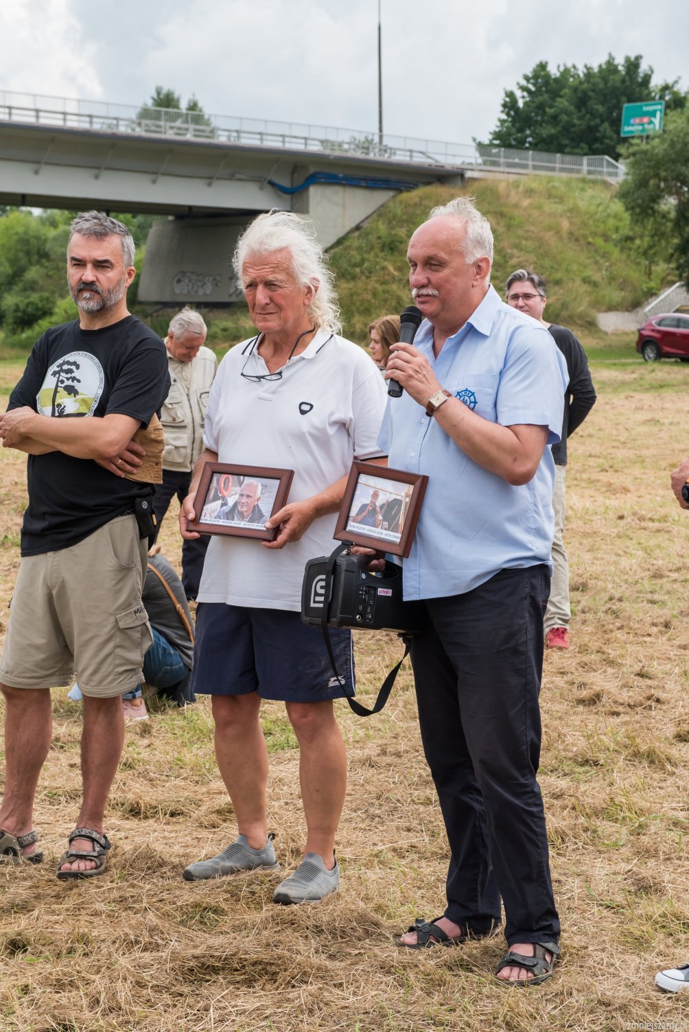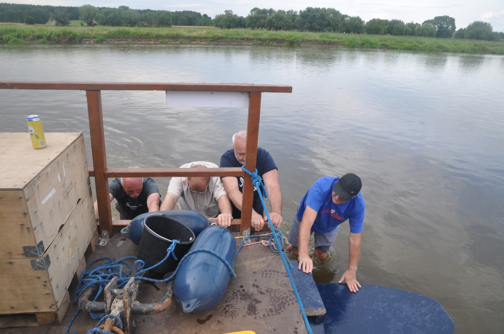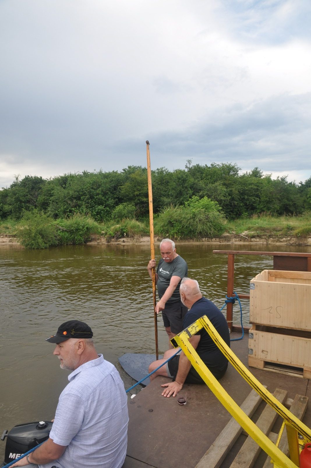 Gulczewo – To ostatni etap spływu. Rzeka staje się mniej kręta, a na prawym brzegu ciągnie się właściwie bez przerwy letniskowa zabudowa. Rzeka ma coraz bardziej bagienny charakter, stąd coraz liczniejsze starorzecza i odnogi po obu stronach. Dopływamy do Barcic. Tu na prawym brzegu zacumowana, czeka na nas tratwa Pielgrzym. Załoganci gotowi do drogi. Po krótkim odpoczynku uruchamiamy silniki i w towarzystwie kajakarzy ruszamy w stronę Popowa Kościelnego. Mimo małego obciążenia nie udaje się pokonać trasy bez wejścia na mieliznę. Chwila nieuwagi i prawy kadłub wbija się w piaszczystą łachę. Pomagają nam strażacy z OSP Popowo i niezastąpiony Rysiu ze swoim sprzętem – dziękujemy. Popowo Kościelne, nad rękawem starorzecza z prawej kościół neogotycki; u połączenia rzeki ze starorzeczem ośrodek wypoczynkowy. Cumujemy na przystani i już na nogach idziemy do remizy OSP. Tu królewskie przyjęcie. Czekają przyjaciele. Wspólne rozmowy nie mają końca i toczą się do późnej nocy. Jutro niedziela i kolejny etap spływu do Nieporętu.