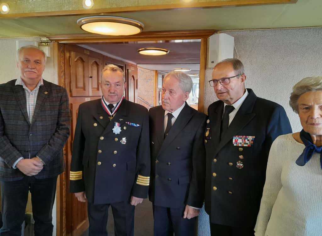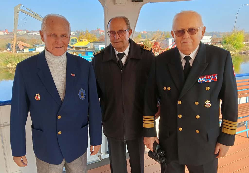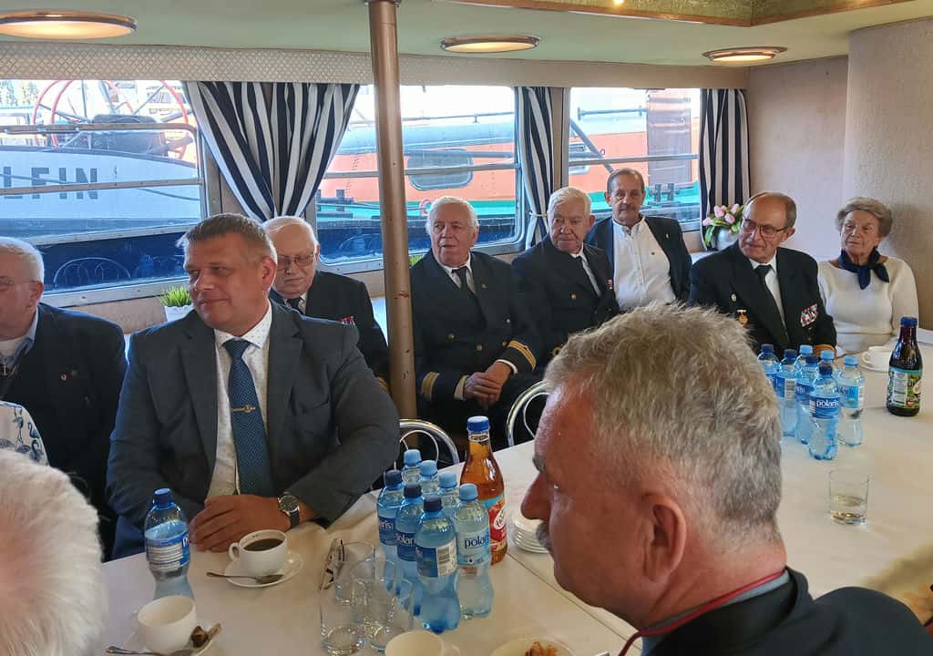 ze wspaniałym zabytkiem architektury – Płocką Bazyliką Katedralną, gdzie pochowani są dwaj królowie Polski Bolesław Krzywousty i Władysław Herman. Uczestnicy rejsu podziwiali zarówno amfiteatr na skarpie jak i molo oraz marinę. Na pokładzie rufowym została wykonana zbiorowa fotografia. Za mostem kolejowo-drogowym, statek zawrócił i udał się w drogę powrotną. Po powrocie do portu, na uczestników czekały okolicznościowe pamiątki – artefakty o tematyce morskiej wykonane z drewna. Prezes LMiR kpt. ż. w. dr inż. Andrzej KRÓLIKOWSKI przekazał podziękowania kpt. ż. ś. Jerzemu PIELACIŃSKIEMU, kpt. ż. ś. Mariuszowi PIELACIŃSKIMU i por. ż. ś. Mariannie PIELACIŃSKIEJ za wzorową realizację przedsięwzięcia. Zdaniem wielu uczestników spotkania, w dniu 26 października 2024, miało miejsce jedno z najbardziej udanych przedsięwzięć LMiR na śródlądziu.