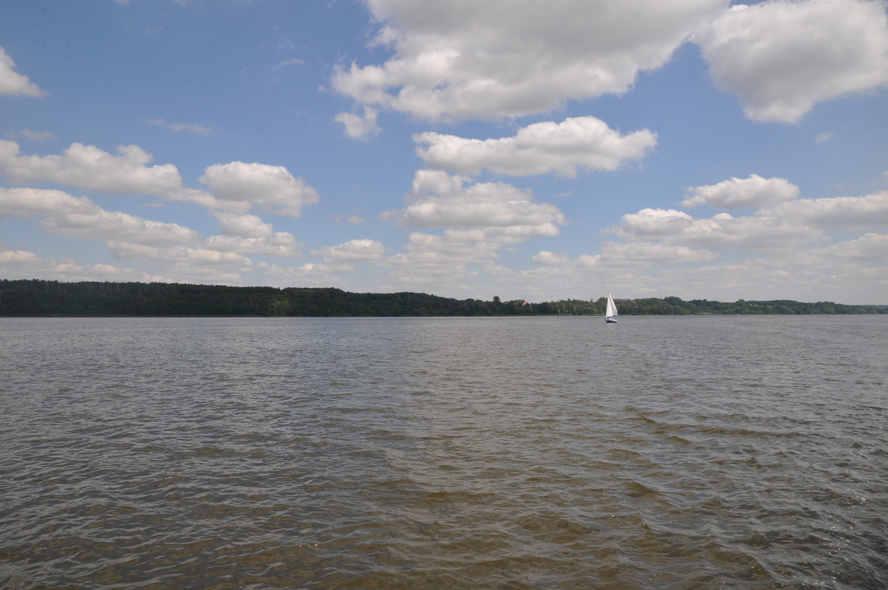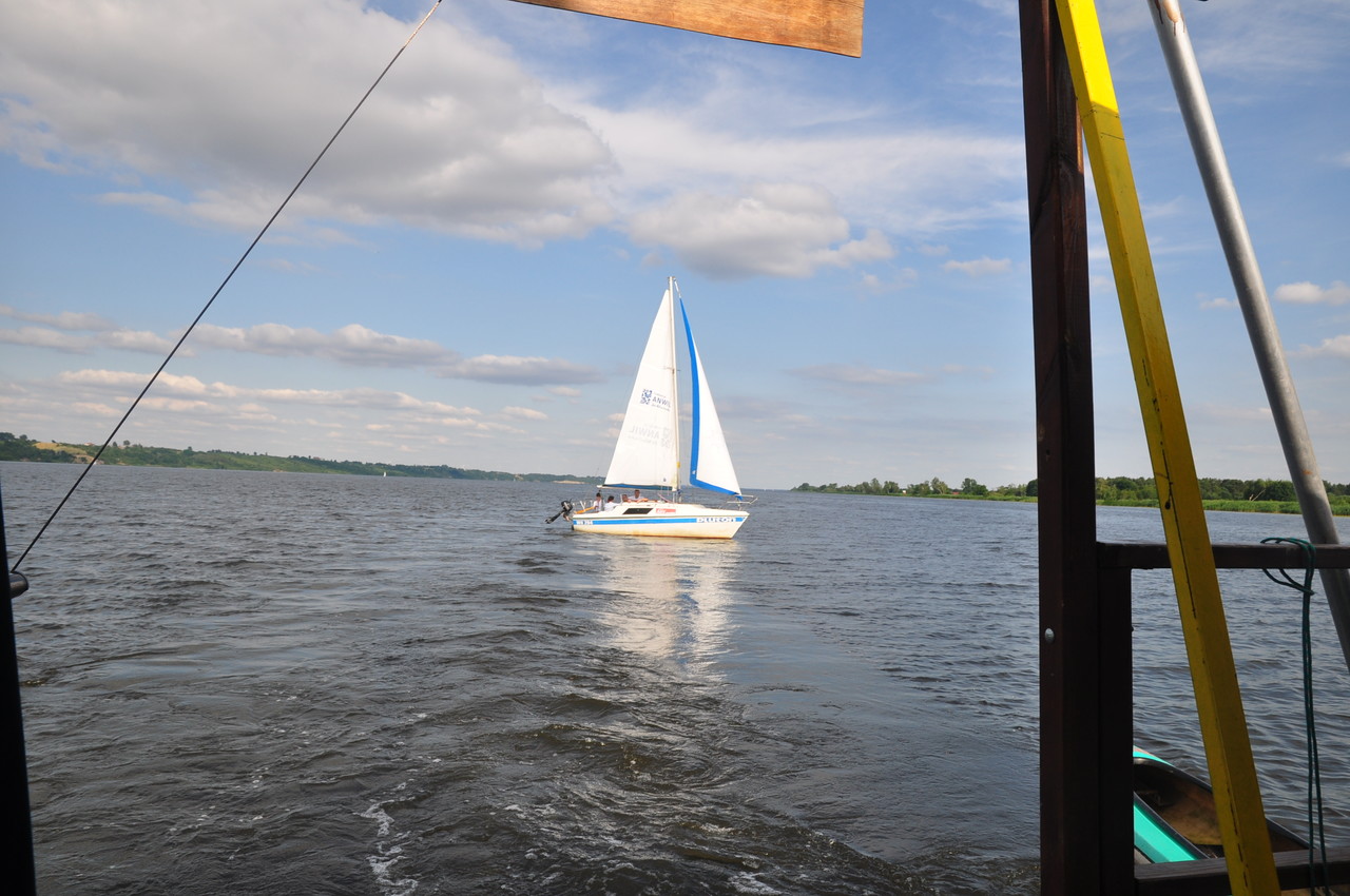 667 kilometr Wistka, marina z lewej strony; na prawym brzegu zatoka Kuzki. Piękna pogoda sprzyja rekreacji. Na wodzie duży ruch. Podpływają łodzie motorowe, skutery i jachty żaglowe. Na jedną z nich przesiada się Gabrysia i prezentuje swoje umiejętności żeglarskie. Męska załoga nie chce oddać takiej załogantki. Musimy zapłacić stosowny bakszysz.