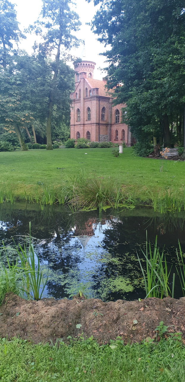 649 kilometr. Po lewej burcie wejście do portu jachtowego w Nowym Duninowie. Charakterystycznym punktem orientacyjnym jest piękny, neogotycki zameczek z czerwonej cegły, z basztą i krenelażami (1862-76), oraz kościół z początku XX w. Cumujemy prawą burtą tuż za łodzią Andrzeja i Uli. W porcie kilka jednostek żaglowych i motorowych. Na nabrzeżu pojawia się znajoma ekipa: Jadwiga, Włodek i ich wnuczek Krzyś. Tym razem bez ukochanego Sokoła. Tradycyjnie przywożą wspaniałą drożdżówkę z owocami. Opowiadają o nowej fascynacji – Opencaching. Jest to gra terenowa polegająca na poszukiwaniu ukrytych ,,skarbów” – keszy. Są to skrzynki zawierające dziennik zdobywców (tzw. logbook) oraz często drobne fanty, które można zabrać zostawiając coś w zamian. Podczas poszukiwań odkryjesz wiele niezwykłych miejsc. Reprezentacja Pielgrzyma włącza się w poszukiwania. Kierujemy się w stronę charakterystycznego zameczku położonego po drugiej stronie szosy. Cały kompleks jest fantastycznie położony w otulinie Gostynińsko-Włocławskiego Parku Krajobrazowego. Obok mamy również mniejszy pałacyk myśliwski. Jak się dowiadujemy z zainstalowanej tablicy informacyjnej poza tym, że był rezydencją pochodzącego z Dolnego Śląska Karola Wilhelma Albrechta von Ike, zwanego potem Ike-Duninowskim, pałac pełnił także funkcję kaplicy zboru ewangelicko-augsburskiego, kina, hotelu i Urzędu Gminy; teraz zaś trafił w ręce prywatne. Skarbów nie znaleźliśmy. Sobotni wieczór kończymy na podziwianiu zachodu Słońca.