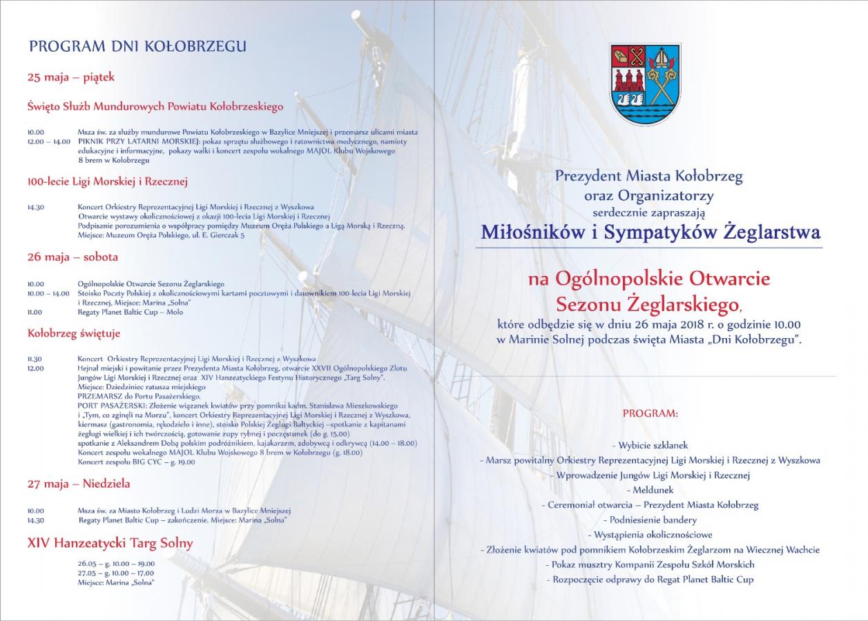 Zaproszenie na Ogólnopolskie Otwarcie Sezonu Żeglarskiego w Kołobrzegu