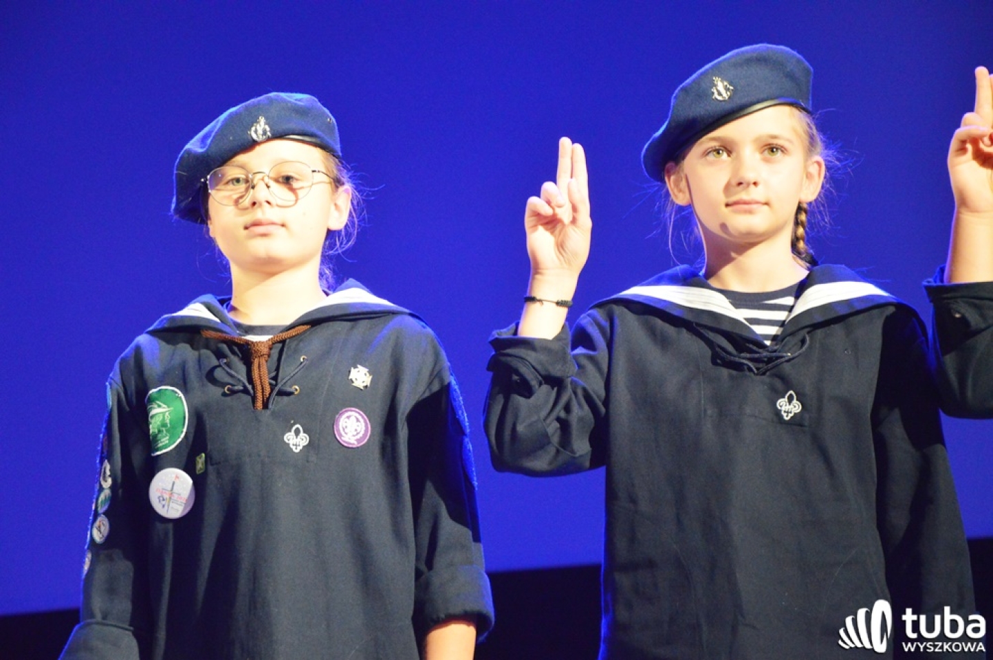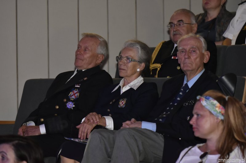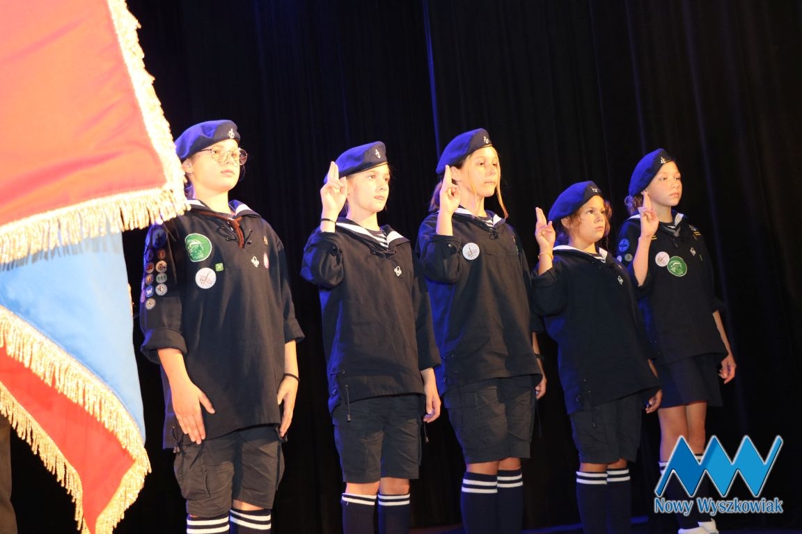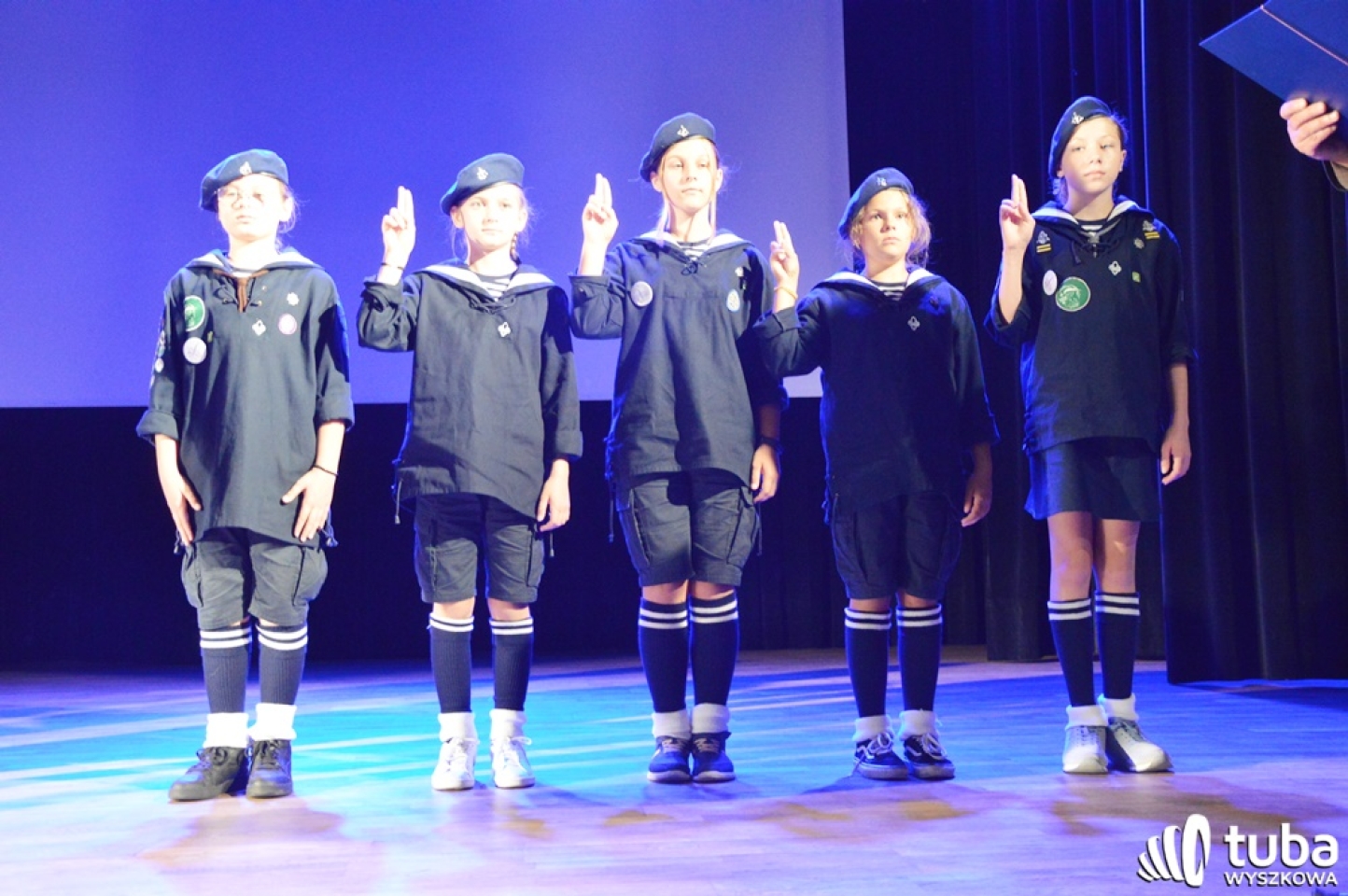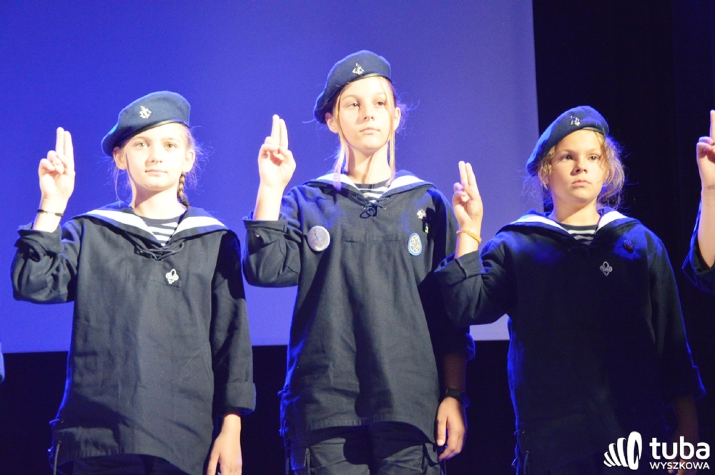 Nadszedł czas na drugą część uroczystości. Na sali koncertowej wszystkich zebranych powitała Elżbieta Kasińska prezes wyszkowskiego oddziału LMiR. Szczególnie gorąco powitała młodzież i najstarszego członka Ligi Jerzego Dąbrowskiego. Odniosła się do roli jaką odgrywają wszystkie organizacje społeczne w budowaniu Polski Morskiej i Rzecznej. Takim wspaniałym przykładem może być bardzo dobra współpraca ze Związkiem Harcerstwa Polskiego, stowarzyszeniem mieszkańców Rybienka Leśnego i okolic, oraz innymi grupami zainteresowanymi ,,ożywieniem” rzeki Bug. Podkreśliła znaczenie pracy z młodzieżą na rzecz wychowania wodniackiego. Po powitaniu wprowadzony został sztandar Ligi Morskiej i Rzecznej. Zebrani odśpiewali Hymn do Bałtyku. Na scenę zaproszono jungów 48 WDH Junga. Złożyli oni ślubowanie. Rotę odczytał kmdr Marek Padjas. Ze względu na pandemiczną sytuację uroczystość nie mogła odbyć się nad brzegiem Bugu.