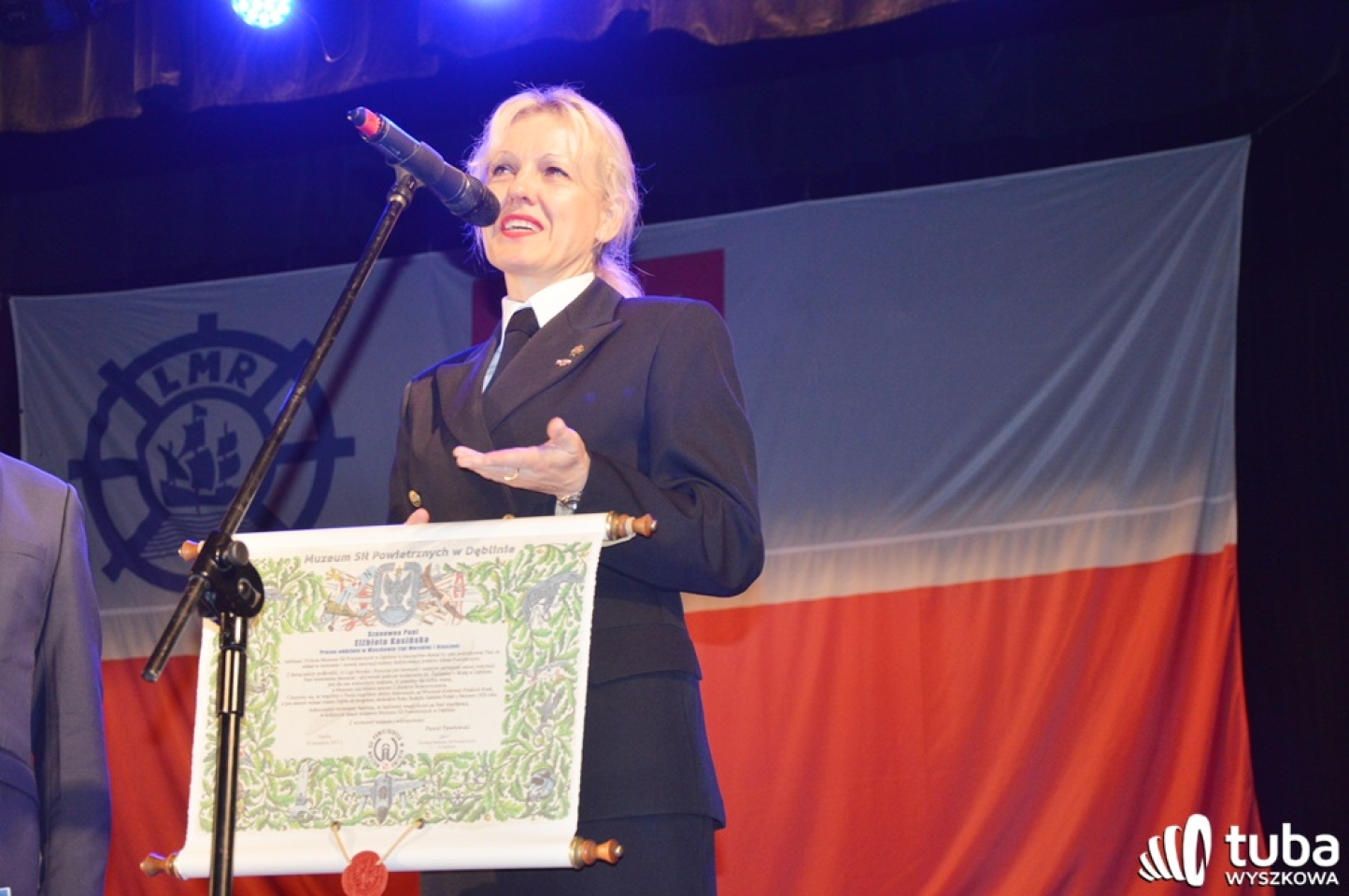 Gratulacje i życzenia. Dyrektor Muzeum Sił Powietrznych Paweł Pawłowski przekazał okolicznościowy dyplom wzorowany na przedwojennym patencie oficerskim Elżbiecie Kasińskiej za nieustanną, żmudną pracę w jednoczeniu Polaków wokół spraw morskich. Podkreślił, że każda kropla rzecznej wody, która płynie w Bugu, wpada do Wisły, a w końcu dociera do Bałtyku.