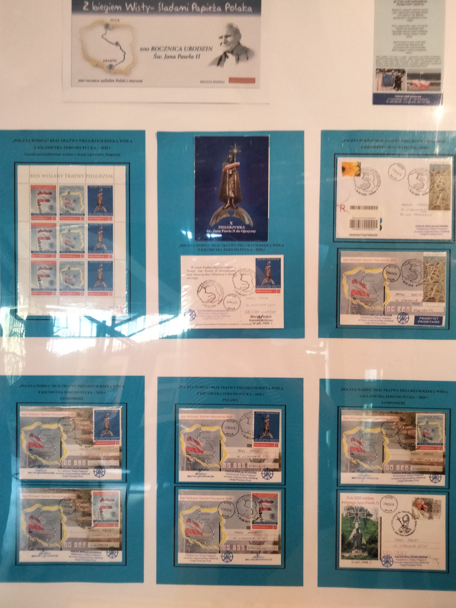 Na wystawie można było obejrzeć walory filatelistyczne związane z tradycją zaślubin Polski z Morzem. Między innymi unikatowe znaczki z 10 lutego 1920 roku z Pucka, korespondencje listowe z czasów międzywojnia, poczty z obozów jenieckich, jak również z okresu do 1953 roku. Nie zabrakło okolicznościowych kart pocztowych i datowników związanych z Ligą Morską i Rzeczną. Pocztówki, znaczki personalizowane, kalendarzyki i inne wydawnictwa pokazują jak wielką pracę w zakresie popularyzacji spraw rzecznych i morskich wykonują członkowie Ligi. Szczególnie interesującą była kolekcja poświęcona wyprawom Tratwy Pielgrzym. Od czterech lat żegluje ona pod ligową banderą nie tylko po naszych rzekach, ale również i po Bałtyku. Można było również obejrzeć bogatą kolekcję medali okolicznościowych oraz pamiątkowe pierścienie i obrączki zaślubinowe. Po wystawie oprowadzał Marek Padjas wiceprezes Ligi Morskiej i Rzecznej.